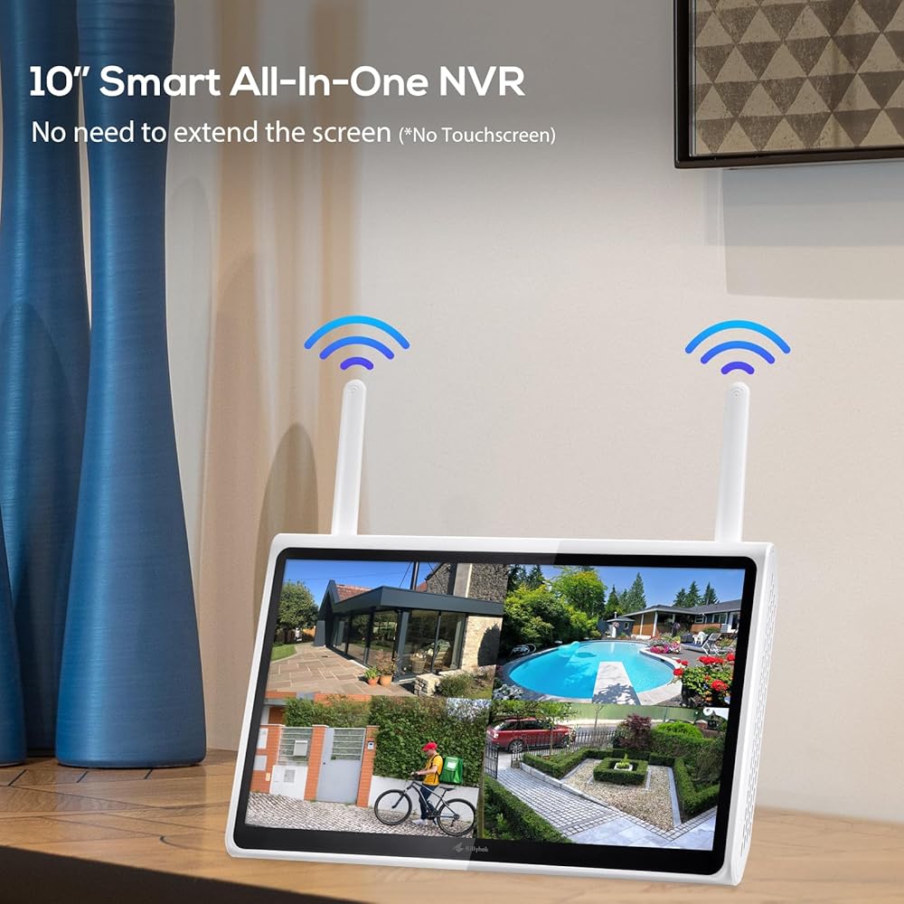 【10CH Smart NVR】This All-In-One wireless security camera system equipped 10" IPS HD Screen (Not Touch Screen), The home surveillance system support local storage, no extra or hidden cost needed! You can add more 6pcs Kittyhok add on cameras.