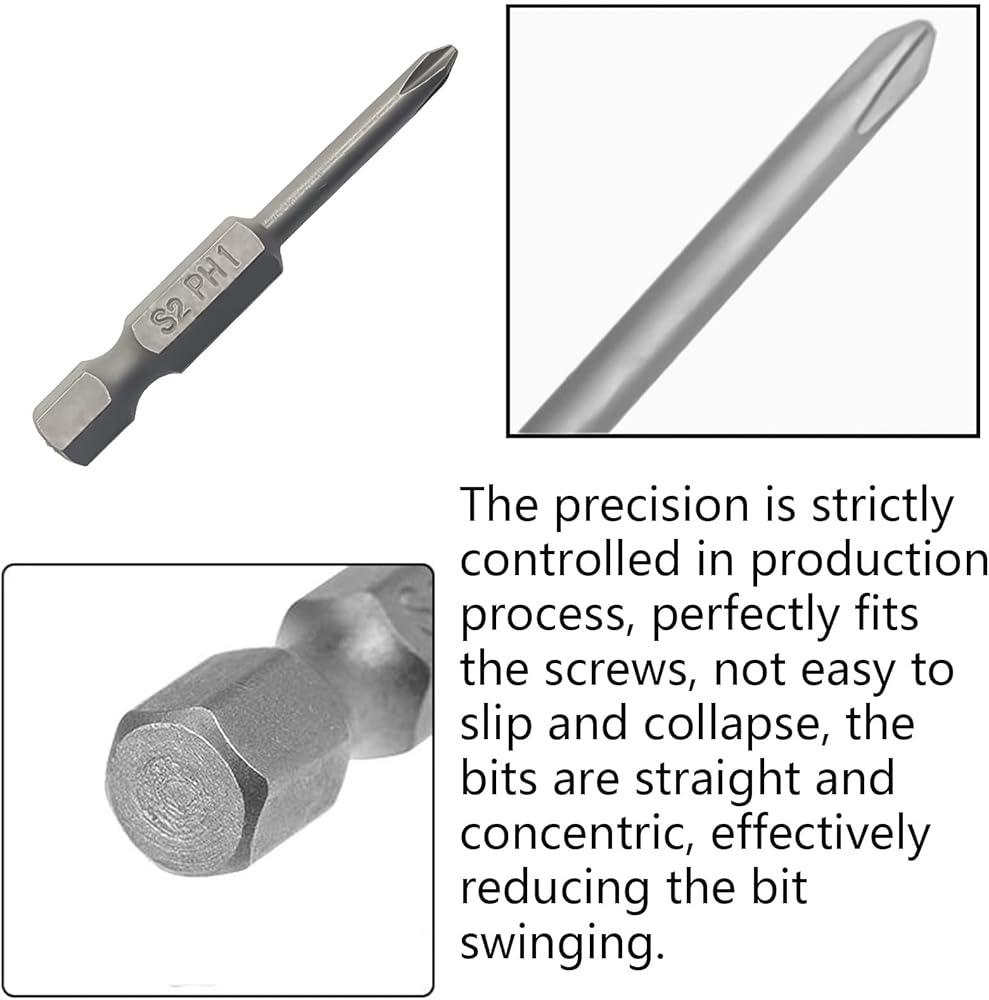 Avantage:Multiple bits - Include 10 PH00 Screwdriver bits with the same size.Made of high grade S2 steel with heat treated for durability and long life use.Hardness reached an use on high strength working conditions.
