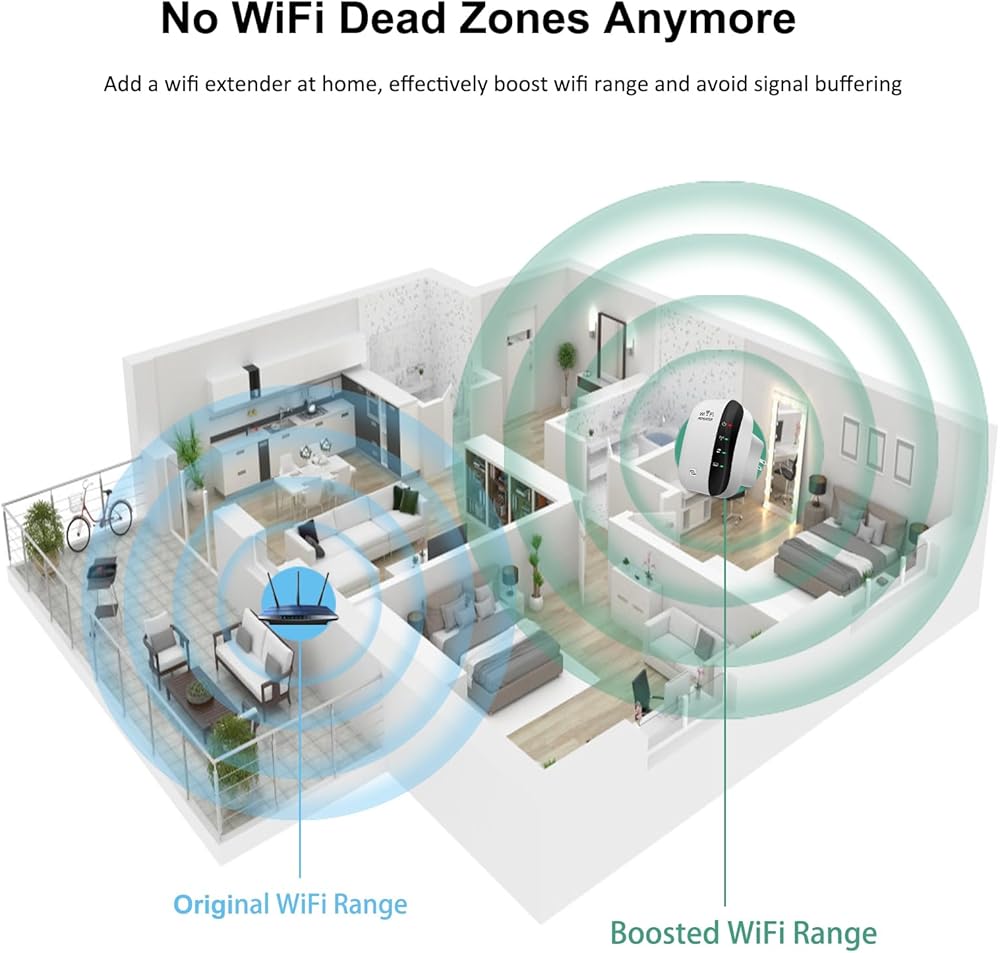 No Wi-Fi Dead Zone - Boost your existing 2.4GHz Wi-Fi coverage to 2500 sq.ft and connect up to 30 devices. Eliminate WiFi dead zones and enjoy lag-free connections to any type of device.