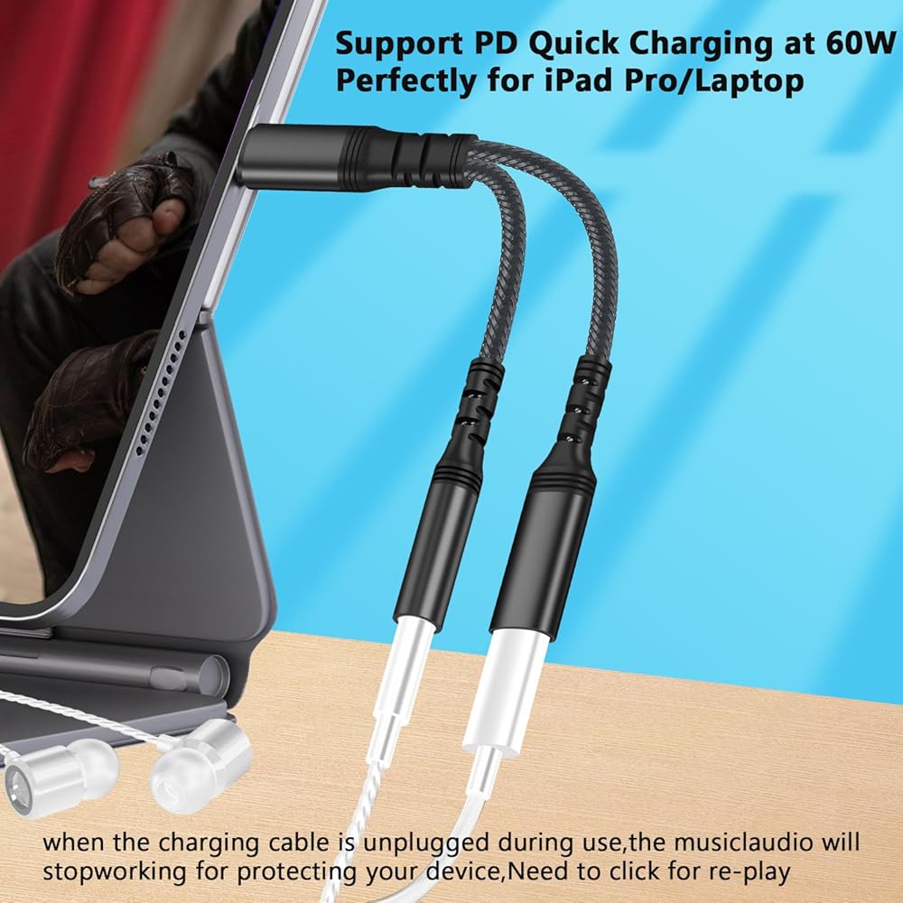 Mxcudu USB Type C Male to 3.5mm Female Extension Headphone jack adapter Audio Stereo Cord Adapter and Fast charging Adapter