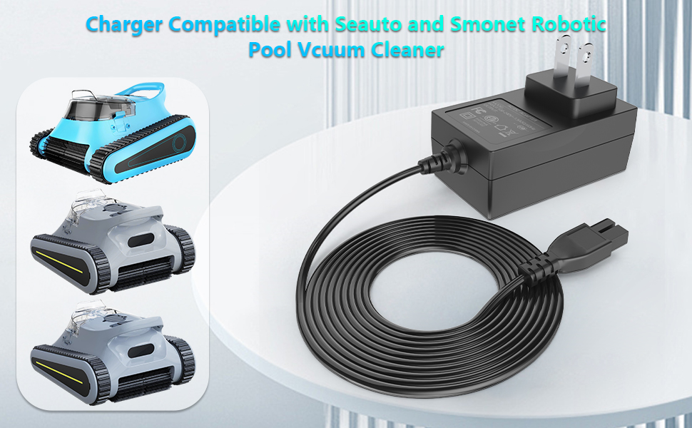 【Compatible Model】Power adapter for Seauto Crab CA CR and Smonet CR6 cordless pool vacuum cleaner replacement.