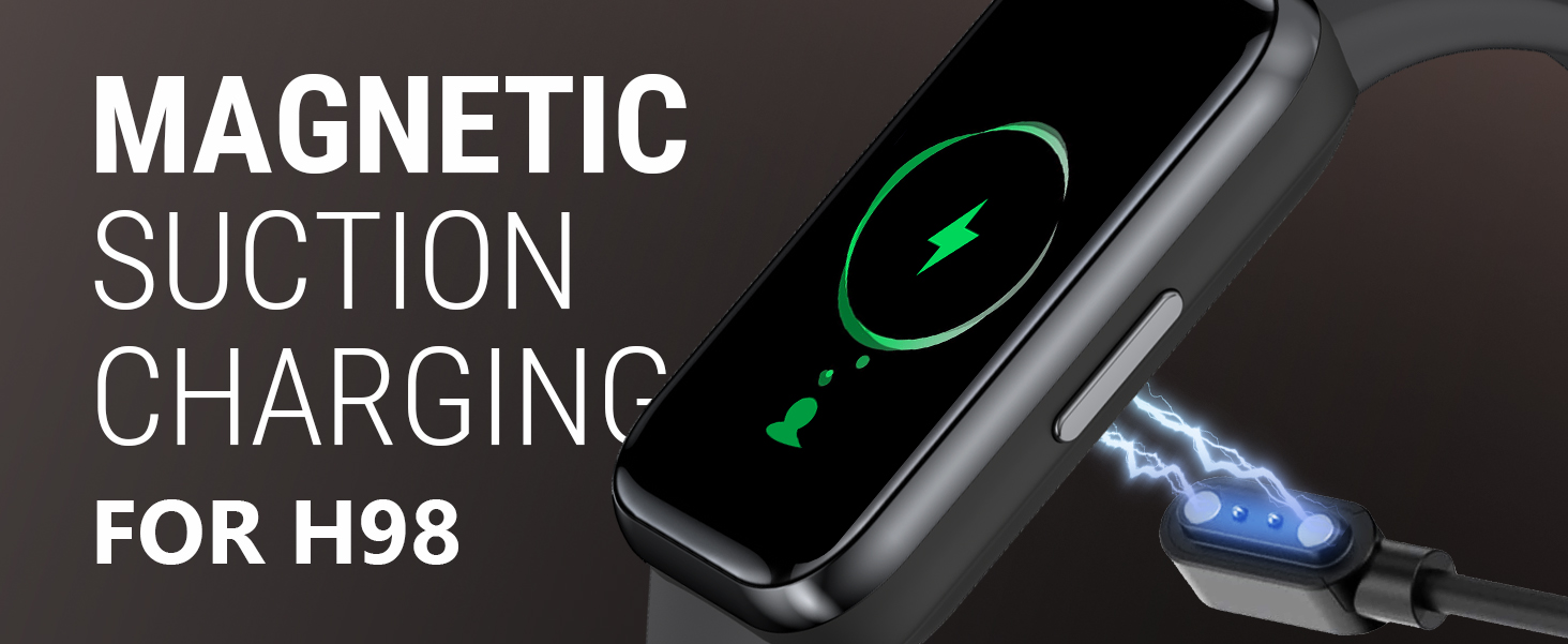 Magnetic Connector: With its magnetic design, the cable can easily snap on to your ZURURU H98 Fitness Tracker and is stable when charging