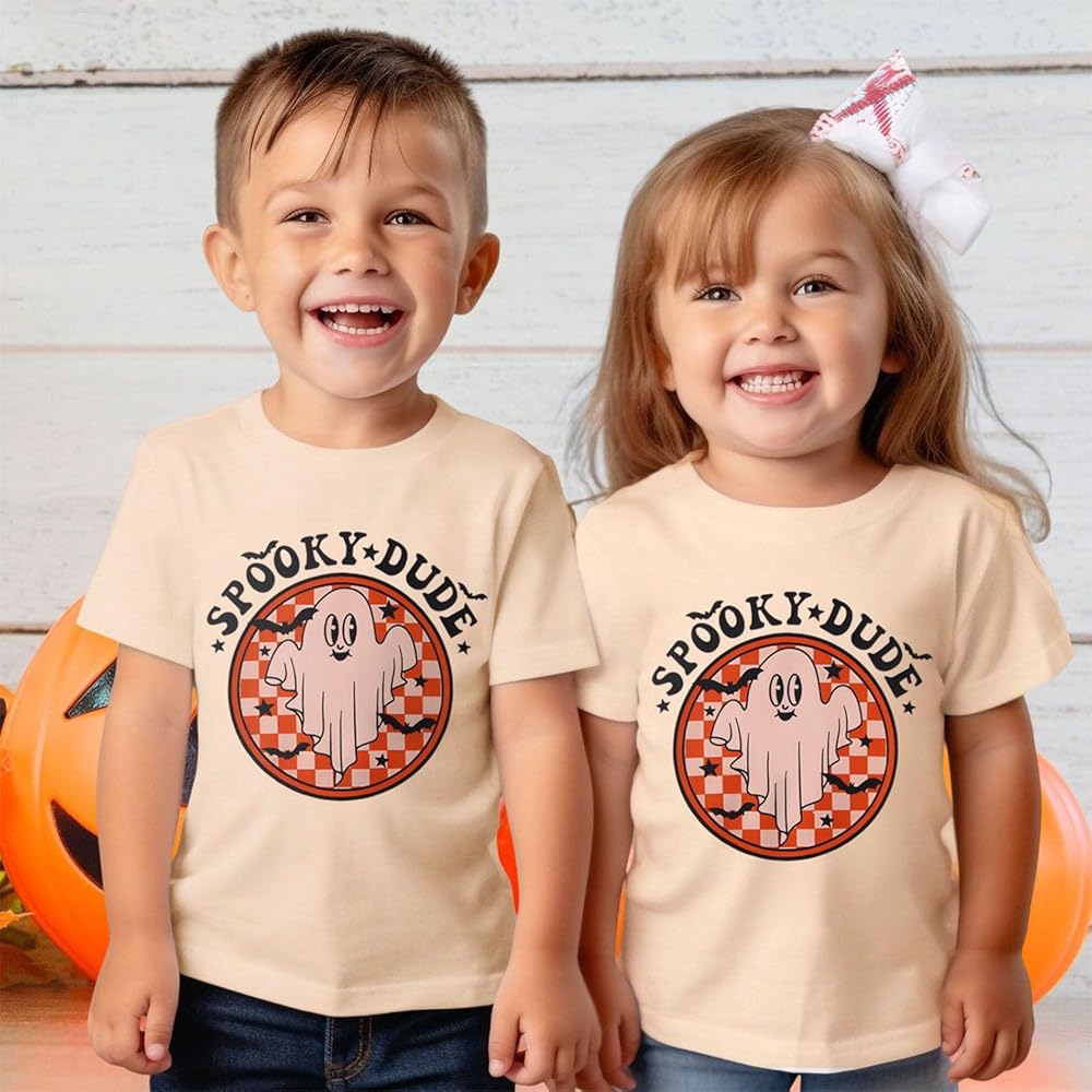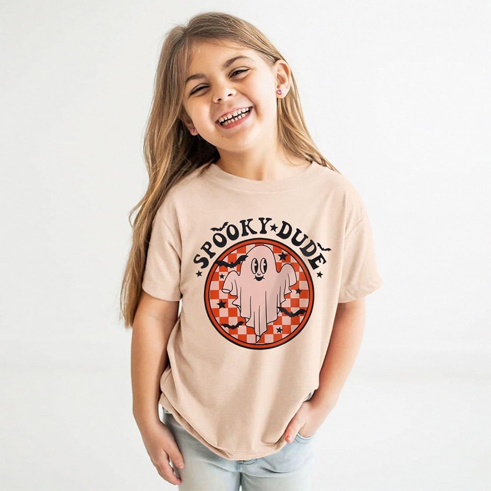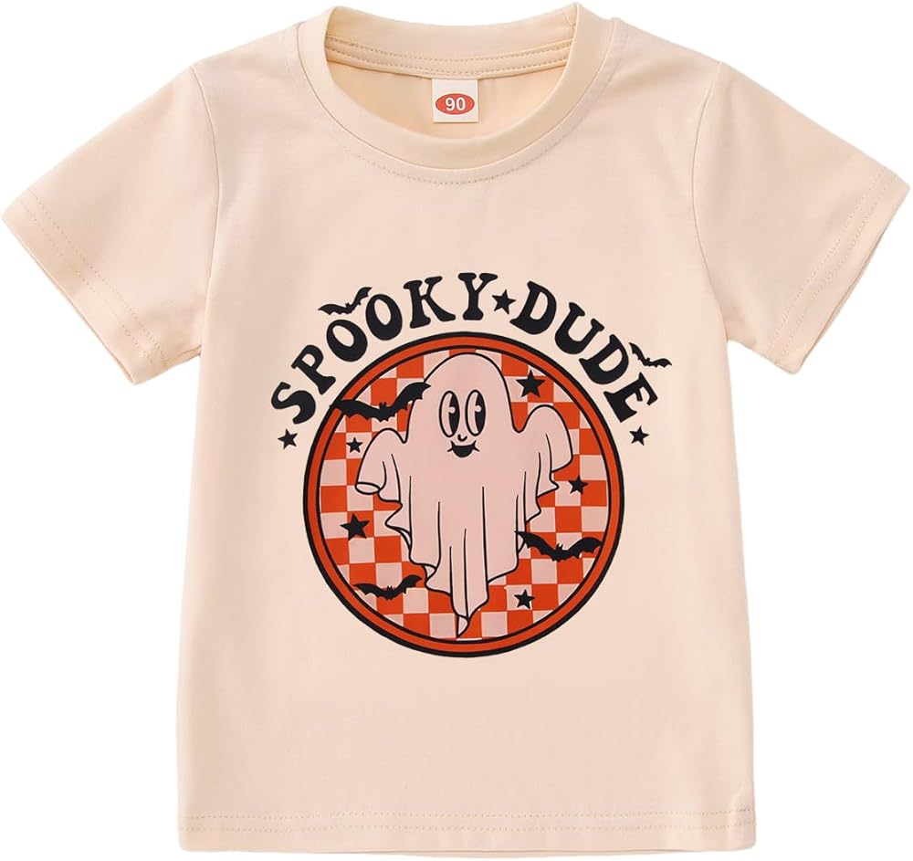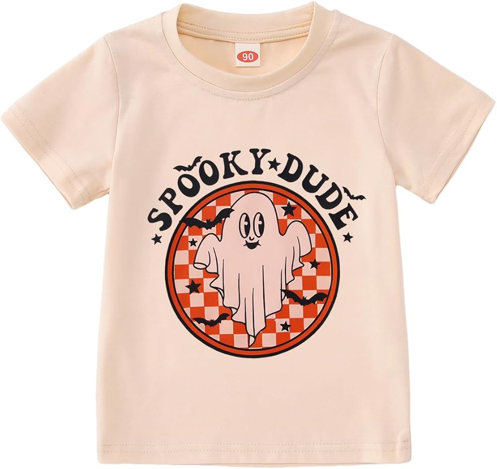 👻Features---Halloween shirts for baby girls boys, classic round neck, cute bat ghost graphic, funny spooky dude letter print shirt. Toddler summer graphic tee, halloween tee shirts for kids, the design is adorable for toddler girls or boys.