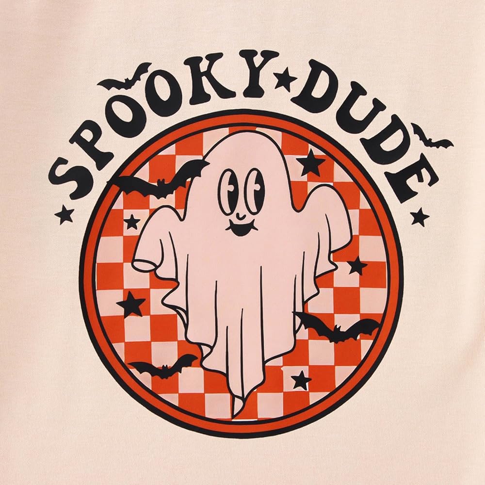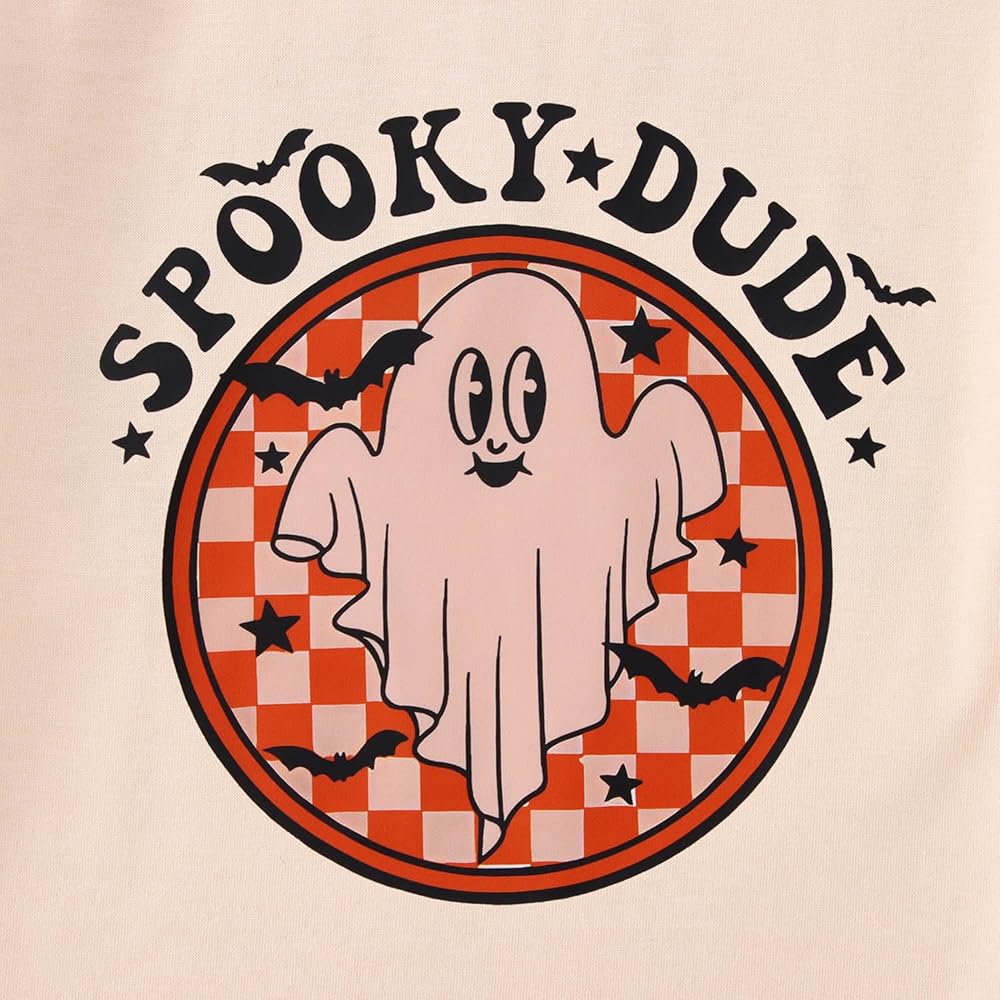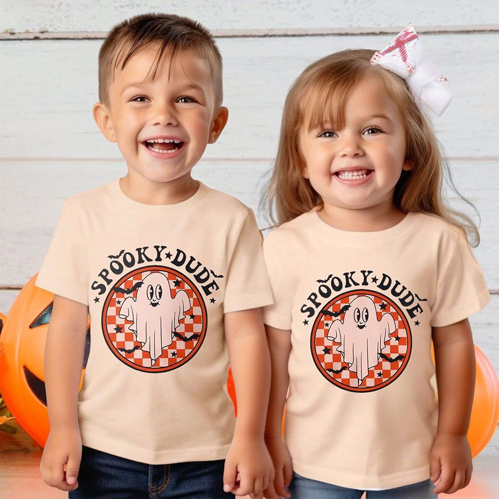 👻Features---Halloween shirts for baby girls boys, classic round neck, cute bat ghost graphic, funny spooky dude letter print shirt. Toddler summer graphic tee, halloween tee shirts for kids, the design is adorable for toddler girls or boys.