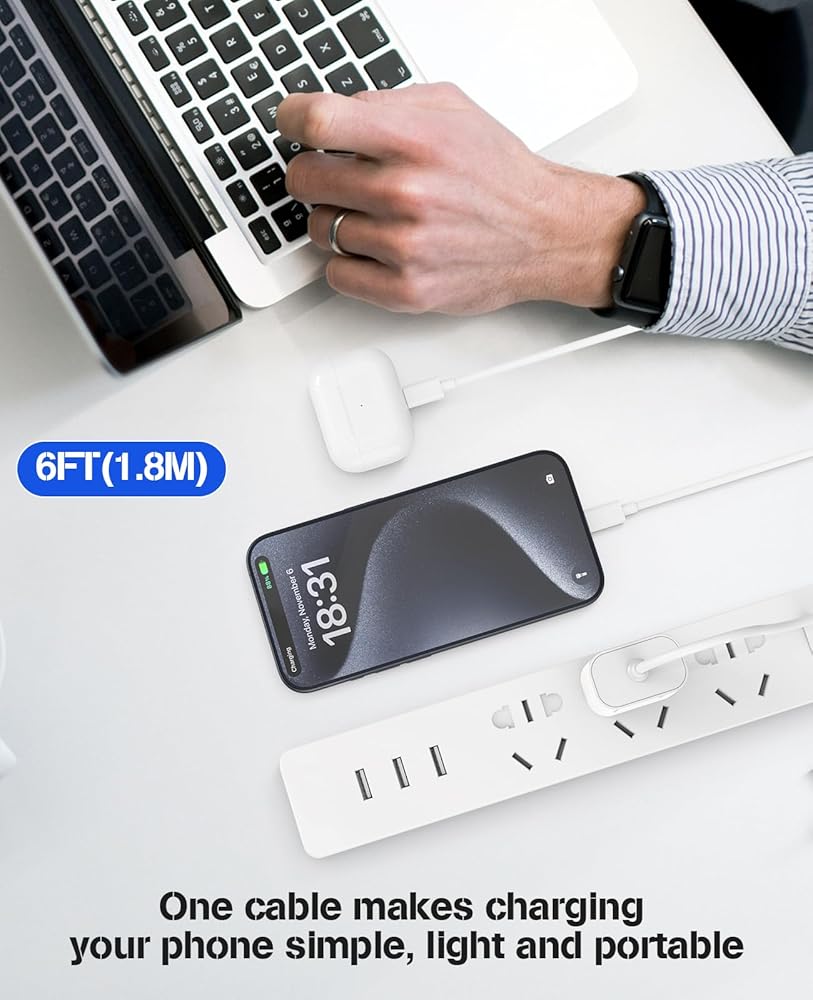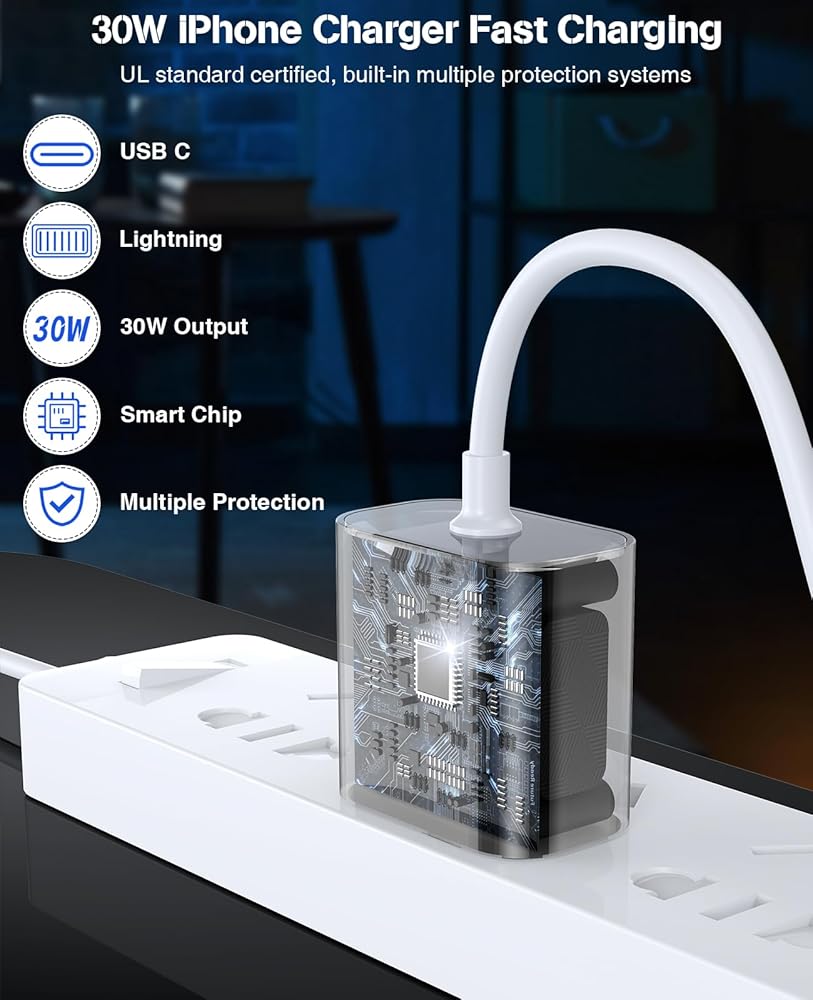 • 【30W Fast Charger】 : Lightning charger for iphone has passed ul standard certification, built-in multiple protection system to avoid over-voltage, over-charging, overheating, etc.30w cell phone lightning charger is 3 times faster than other old chargers, supports fast charging for iphone 15 14 and other models.