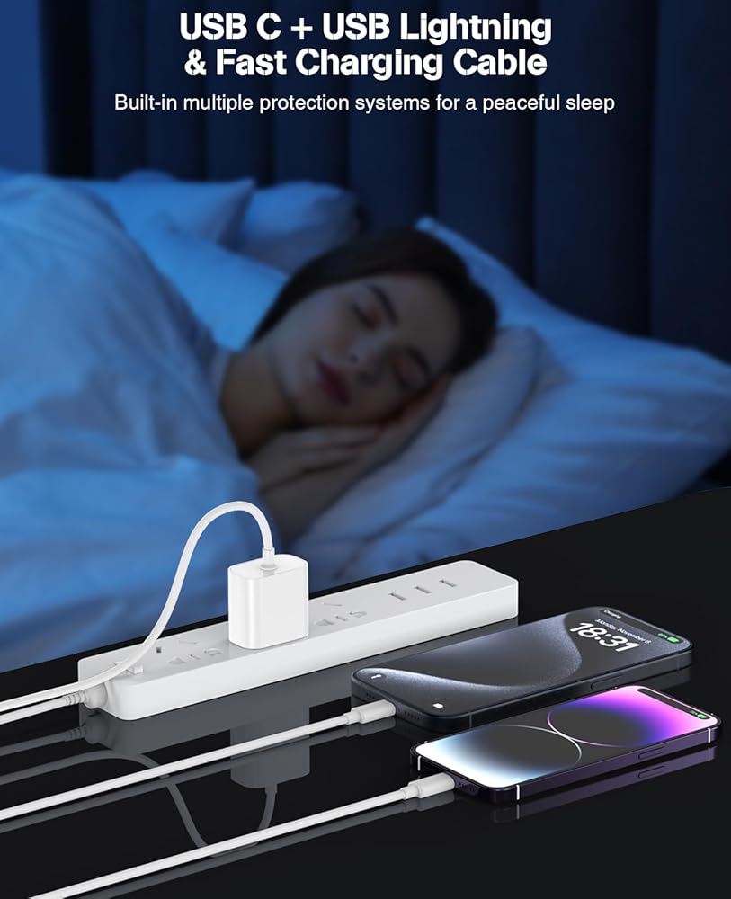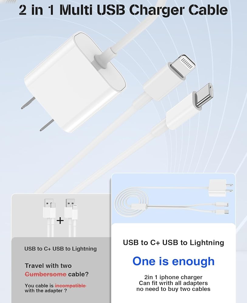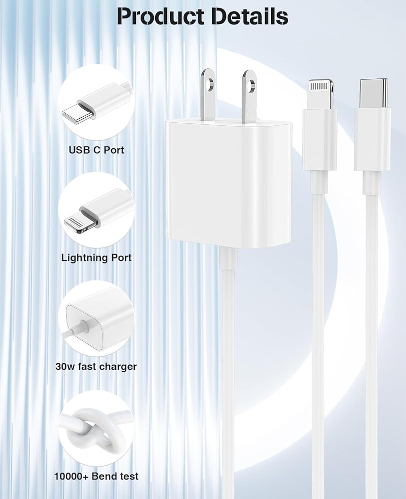 One charger for charging needs?: 2 in 1 for iPhone Fast Charger ,Equipped with 30W wall charger, built in over voltage, over current, over temperature protection offers you safe environment for IPhone 15, for IPhone 14, and iPad Pro.