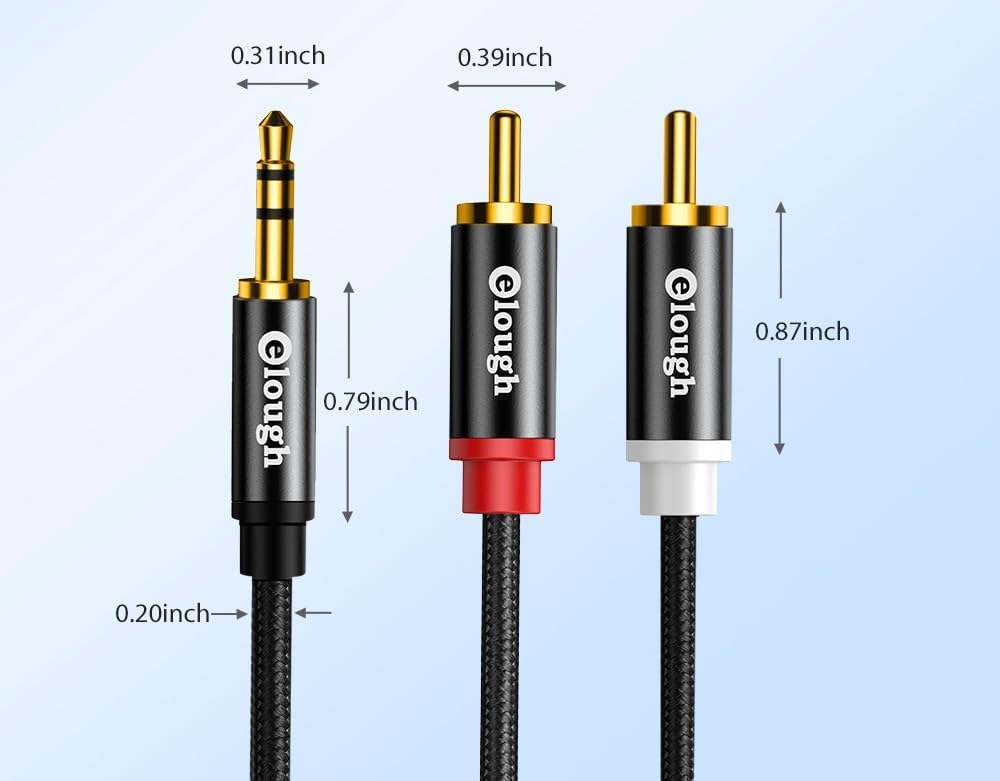 【Compatibility】This 3.5mm to 2 RCA audio auxiliary stereo Y splitter cable is compatible with iPhone, iPod, iPad, MP3 players, CD players, Laptops, tablets and any other digital device with a 3.5mm audio jack; and home audio systems, like amplifier or receiver with RCA (white/left and red/right sockets) jacks.