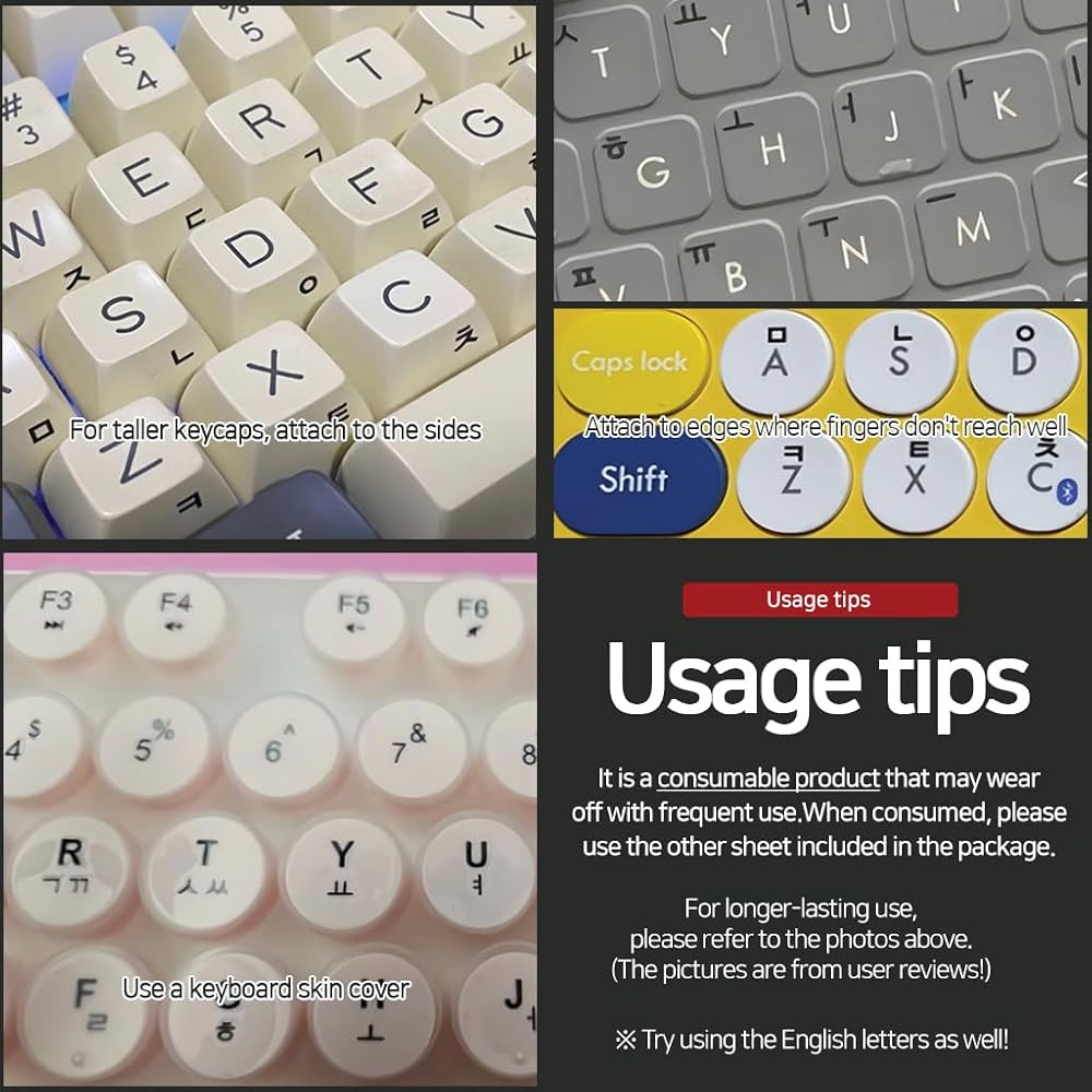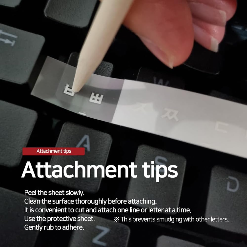 Introducing our Keyboard Keycap Lettering Stickers! Attach letters directly to your keyboard keycaps, including Hangul and Roman characters, making them perfect for Korean, English, and Latin keyboards.