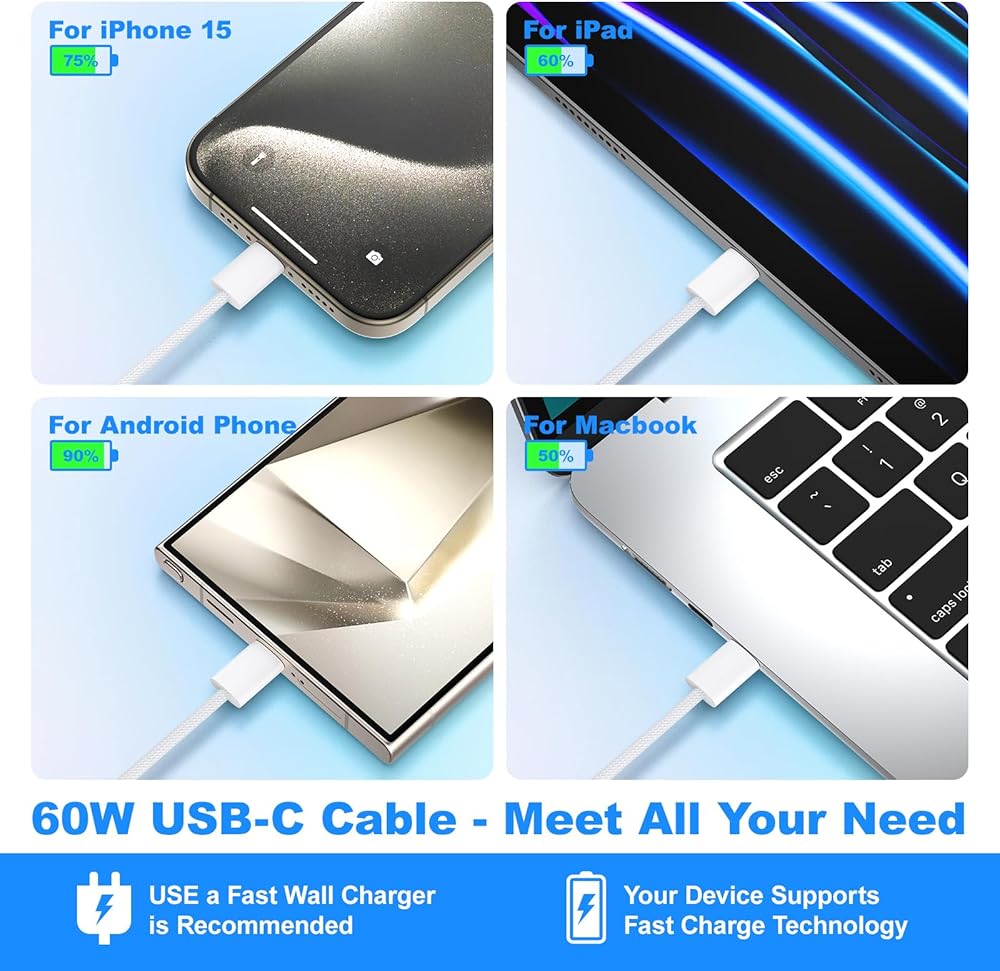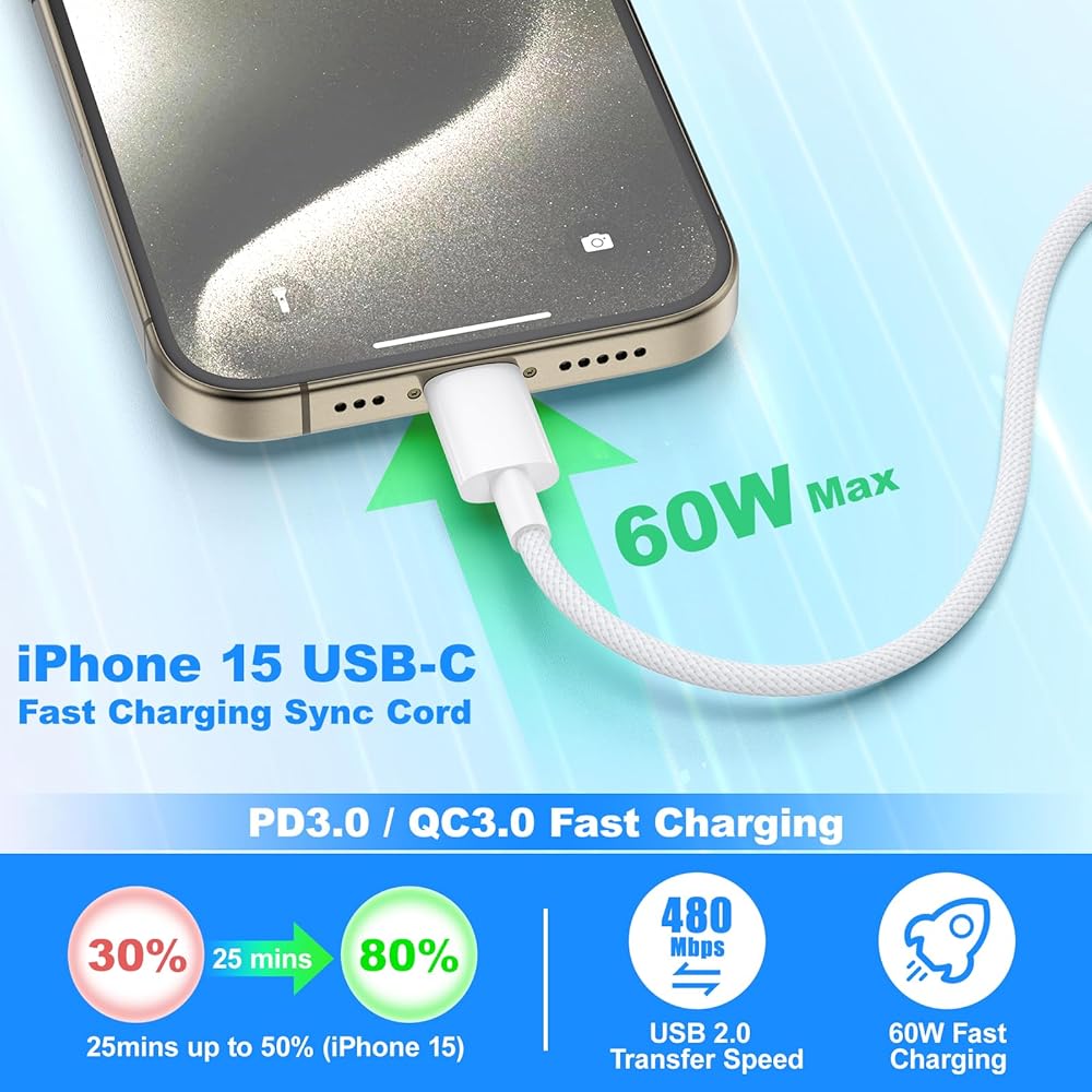 Supports PD3.0 and QC3.0 fast charging technology, can fast charge your iPhone 15 series from 0% to 75% in about 35 minutes.