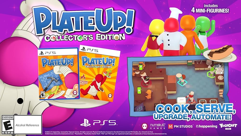 PlateUp! Combines chaotic kitchen and restaurant management with strategic planning and development to create a delightful roguelite dish unlike any other. Up to four players build and run a restaurant from scratch, choosing dishes, buying and placing appliances - some of which can be daisy-chained together to create ambitious automatic kitchens - cooking food and serving customers. Players have free rein to design their restaurant which will expand and develop between shifts - with additional content and challenges unlocked through progression. Can you cook, serve and manage your way through 15 hectic days in your restaurant and unlock a brand-new franchise?