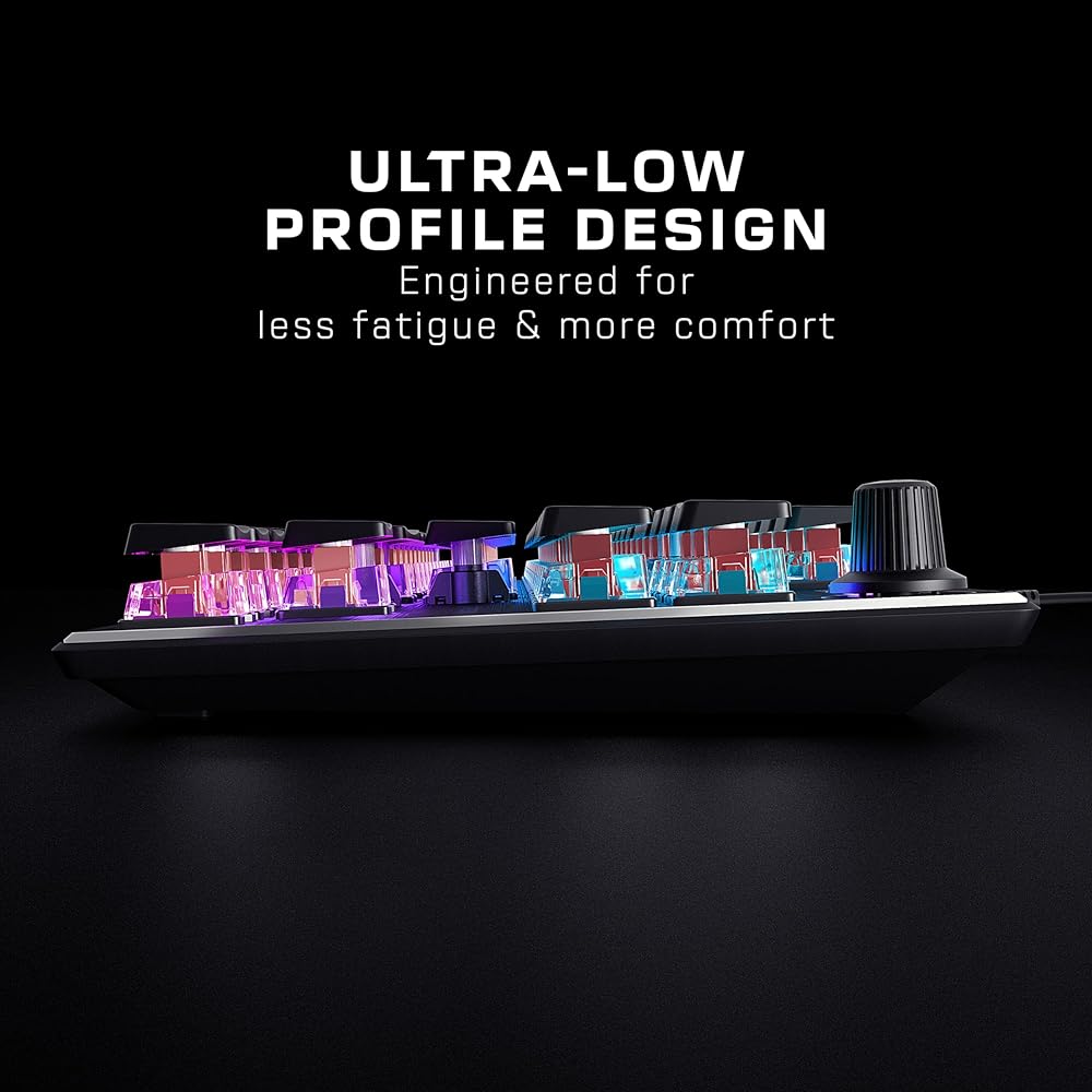 The tenkeyless form factor lets you play in a more natural, comfortable position while allowing for a larger pad and more area for mouse movement, improving your aiming accuracy.