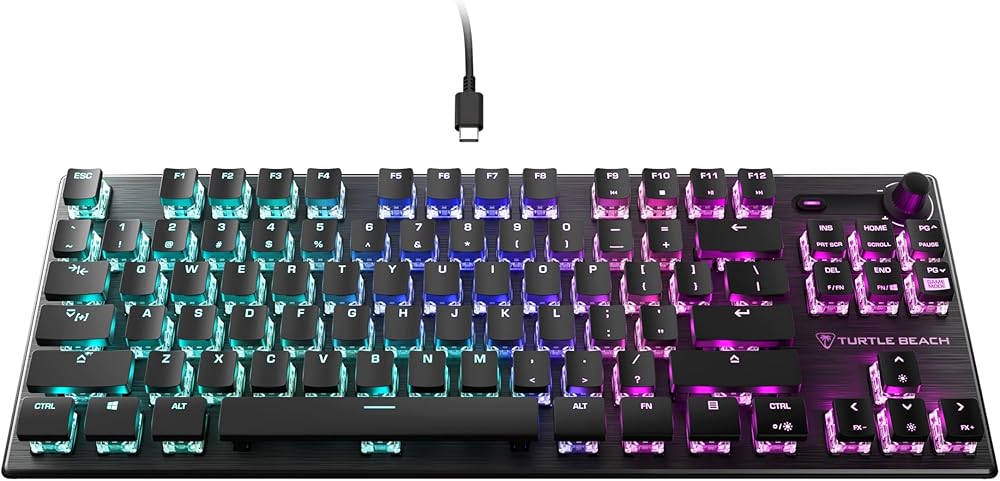 Insanely fast, and immensely customizable, the Turtle Beach Vulcan II TKL Pro Magnetic Mechanical RGB PC gaming keyboard delivers pro-level performance in a compact TKL form. Equipped with features designed to boost your gameplay & aesthetics, including hall-effect magnetic switches, adjustable actuation points, Rapid Trigger setting, per-key AIMO RGB lighting, a push-to-mute volume wheel & more. Plus, with all these features packed in a compact TKL design, your desktop has even more space for your mouse or other accessories.
