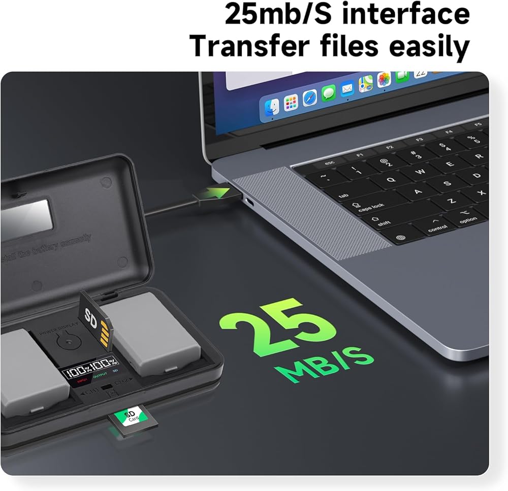 Equipped with a USB charging case, this charger can charge two batteries simultaneously, making it ideal for photographers on the go.