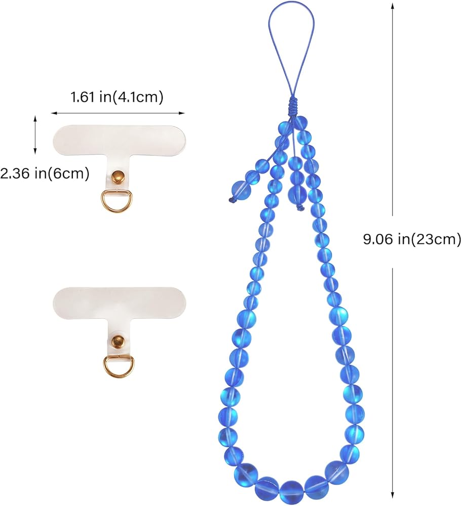 Size:lanyard length 23cm/9.06 inches, beads:0.6~1cm/0.24~0.39 inches, connector patch:4.1×6×0.45cm/1.61×2.36×0.18 inches