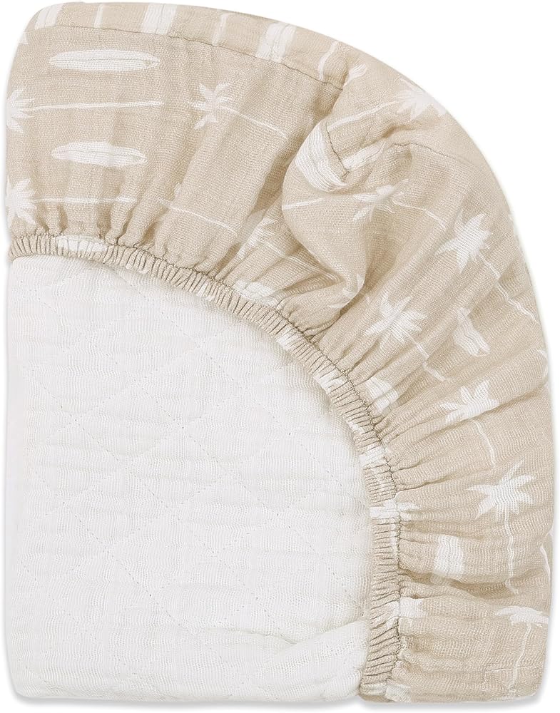 Our changing pad covers are consciously crafted from breathable and soft GOTS-certified organic muslin cotton for a cozy changing spot.