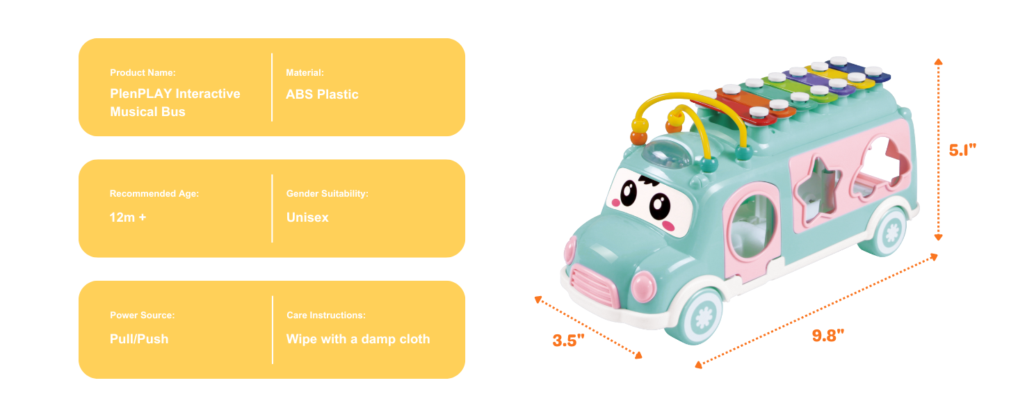 Interactive Learning Experience: This musical bus combines a xylophone, shape sorter, and push & go vehicle, providing endless hours of educational fun for your toddler.