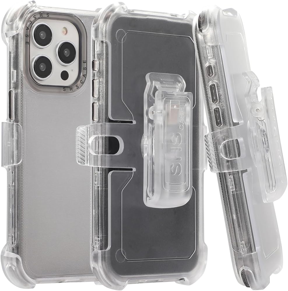 CCSamll for iPhone 15 Pro Max Clear Case with Belt Clip Holster, Military Grade Drop Protection Case with Kickstand Crystal Phone Cover for Apple iPhone 15 Pro Max BLF Black