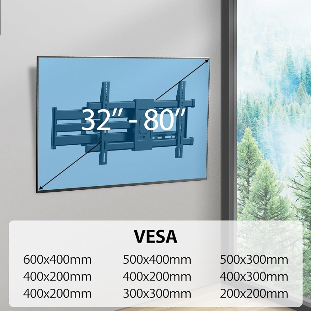 Wide Compatibility: The SHTUMEC TV wall mount fits most 32"-80" TVs with VESA patterns up to 600x400mm. Compatible with wood stud, concrete, and brick wall mounting. DO NOT install the mount on drywall alone.
