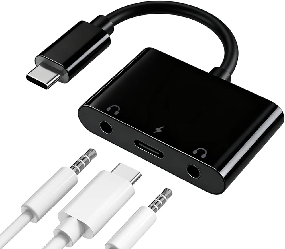 【Upgrade 4 in 1 Design】This USB C to 3.5mm adapter has dual 3.5mm headphone jacks, a USB C headphone jack and a USB C power delivery that allows you to listen to music, watch videos, use audio navigation, music control, or call while charging. You can charge you USB C device and play music at the same time with our adapter.(Note: Type C headphone audio jack and 3.5mm headphone jack can not be used at the same time, dual 3.5mm headphone jack can be used at the same time.)