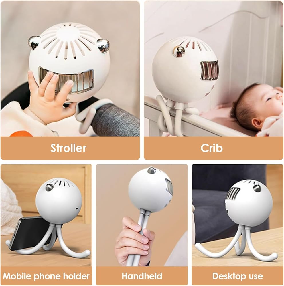 Beberoad Love Portable Stroller Fan with Tripod Stand Flexible Rechargeable Clip On Cooling Fan for Car Seat/Baby Crib/Pet Stroller