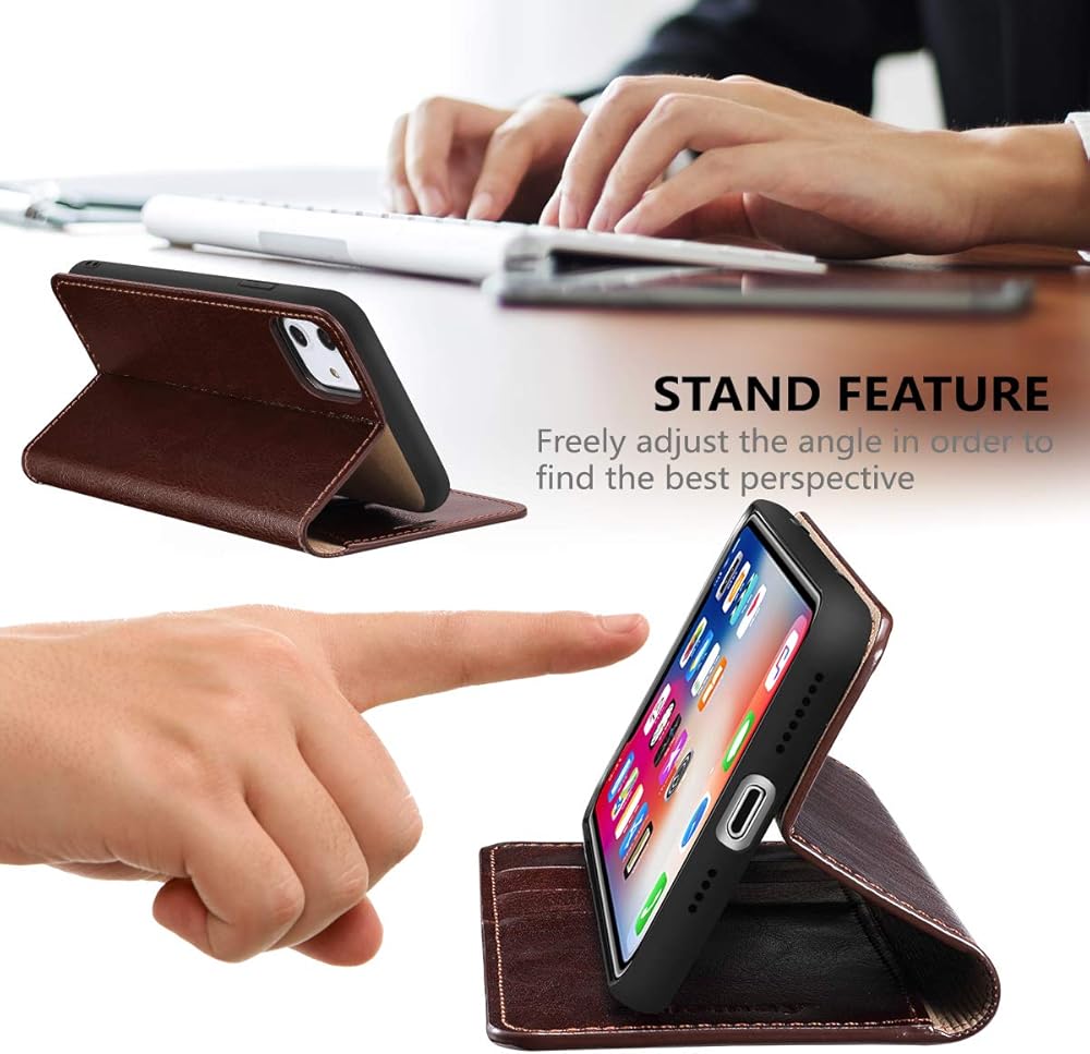 CONVENIENT: This foldable cover can be used as an adjustable kickstand, gives your iPhone 11 a comfortable viewing angle while not adding thickness to your flip case. Precise cutouts for Camera, speakers, earpiece and other functional ports provide easy access to all functions. Change the volume, answer a call, charge your battery take a picture, and listen to music without ever having to remove the leather case. (Support wireless charging).