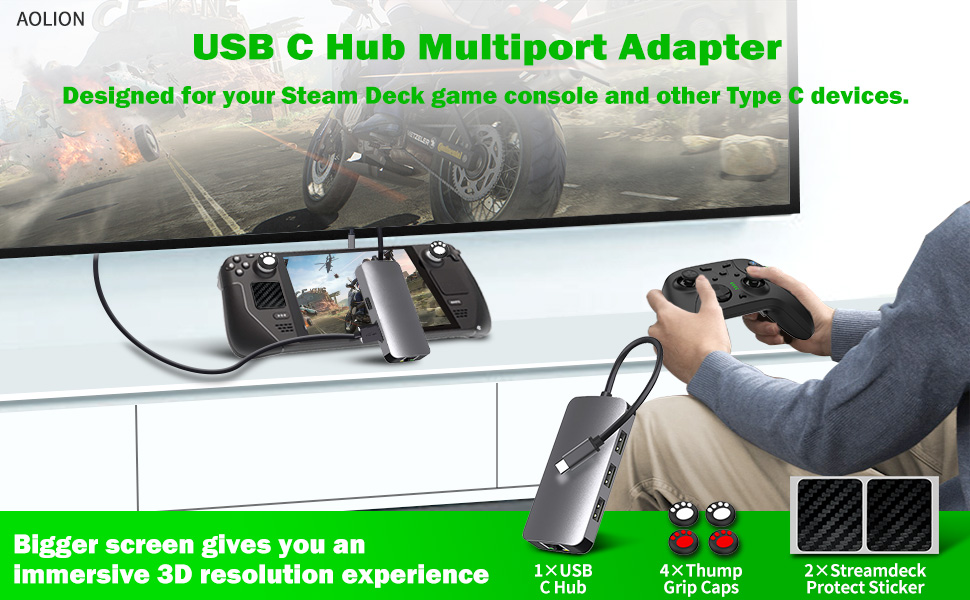 4K USB C to HDMI - AOLION Steamdeck TV Docking Station provides you with lifelike 4K 3840 x 2160@30Hz HDMI images. You could enjoy Stream Deck console games or movies with your friends and family on a bigger screen and get an immersive 3D resolution experience.
