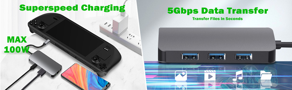 Fast 100W Charging & 5Gbps Data Transfer - Support PD charging up to 100W, the USB C multiport adapter greatly saves your charging time. Supports super faster data transfer up to 5Gbps, you can transfer HD movies or files in just seconds with the Stream Deck accessories.