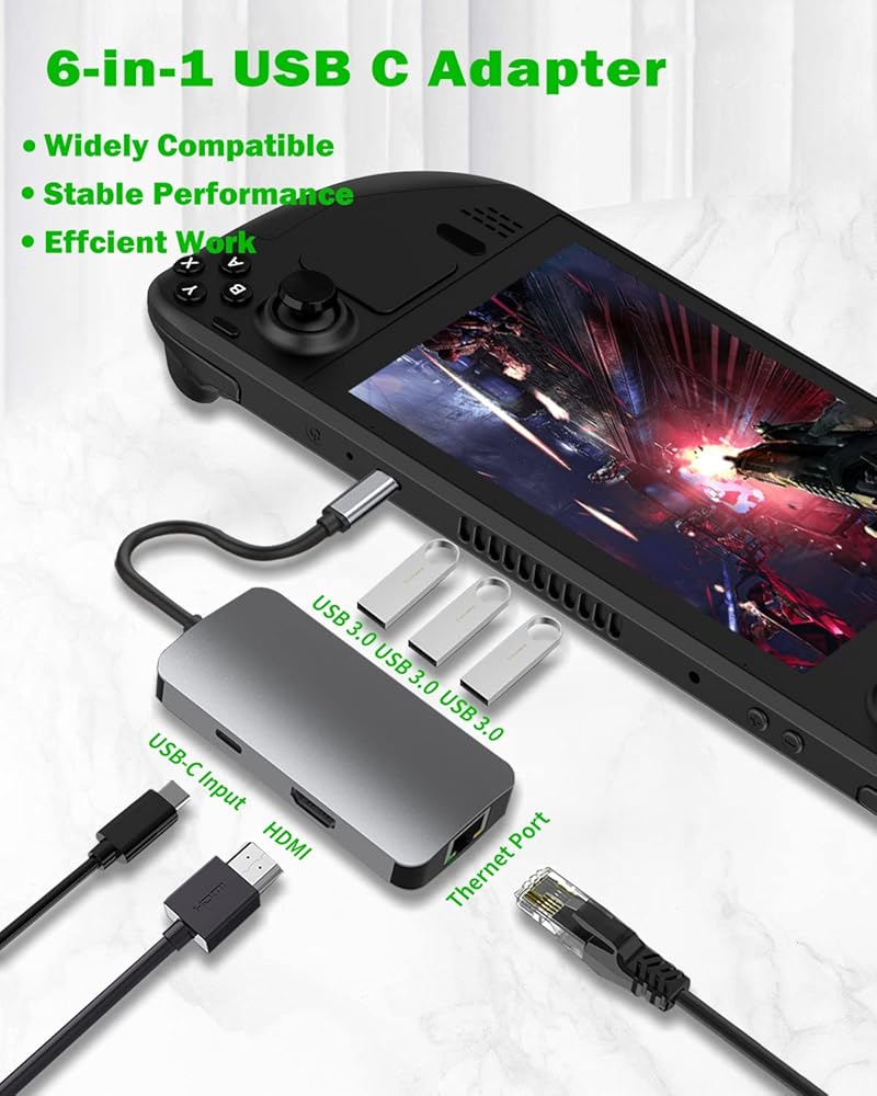 Widely CompatAible Type C Adapter - Type C adapter is compatible with USB C Laptops and other Type C devices, which includes: Steam Deck game console, M-acBook Pro, M-acBook Air, I-pad Pro and more. With 1 x 4K@30Hz HDMI port, 3 x USB 3.0 Ports, 1 x USB C 100W PD charging port, the Steam Deck dock will meet your different needs.