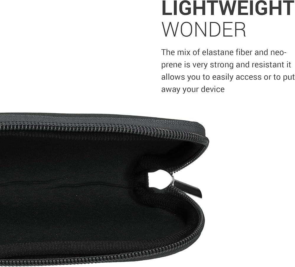 LIGHTWEIGHT: Zippered case made of light, washable neoprene material; measures inside