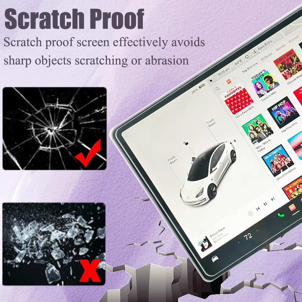 【Better Protection】Yeapop screen protector for Tesla is made with reinforced technology. It resists scratches up to 9H, effectively protecting your Model 3 or Model Y from unwanted scuffs and scratches that could be made by knife, keys and some other hard Tesla car accessories.