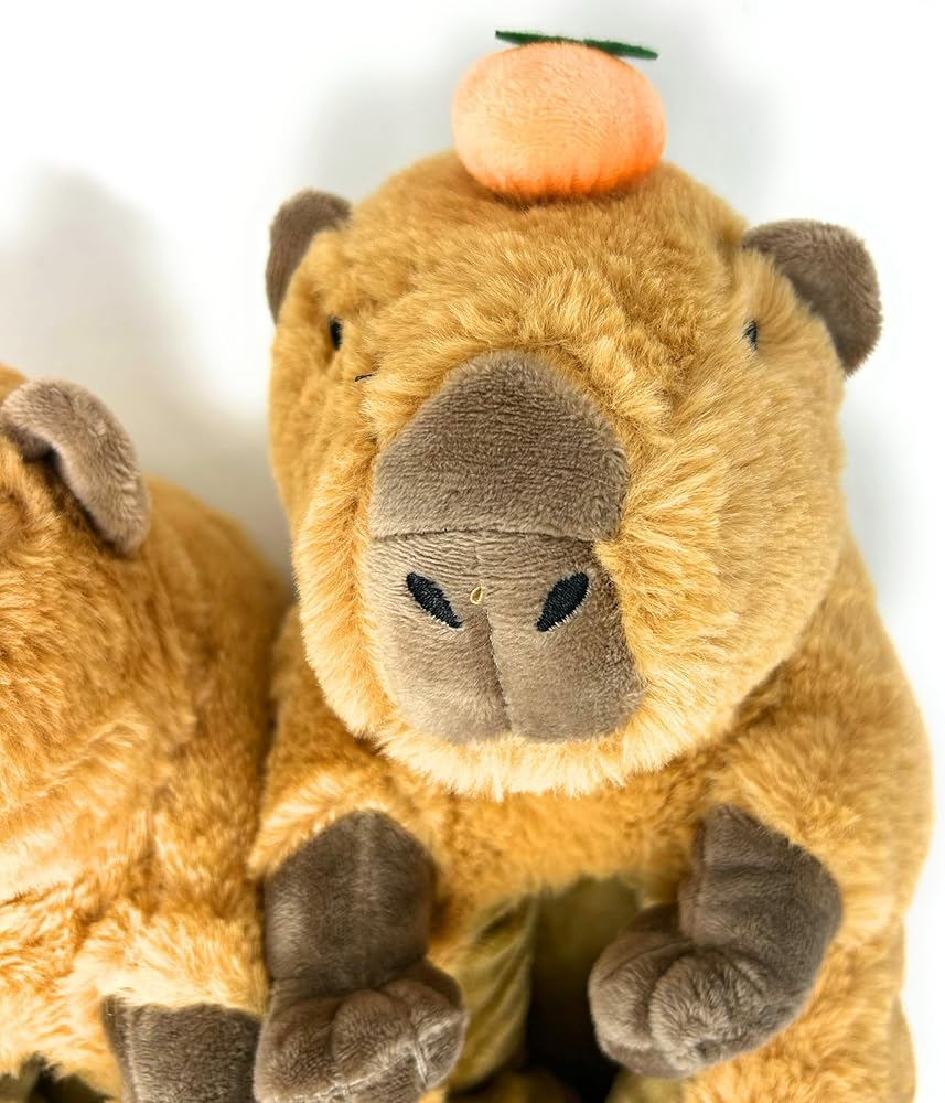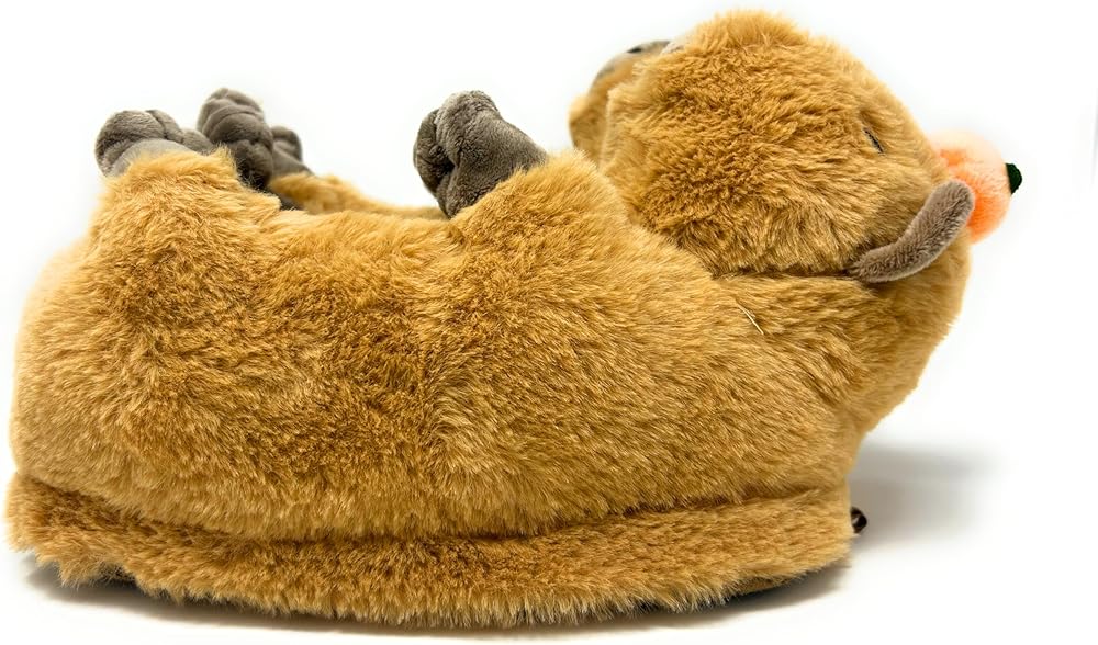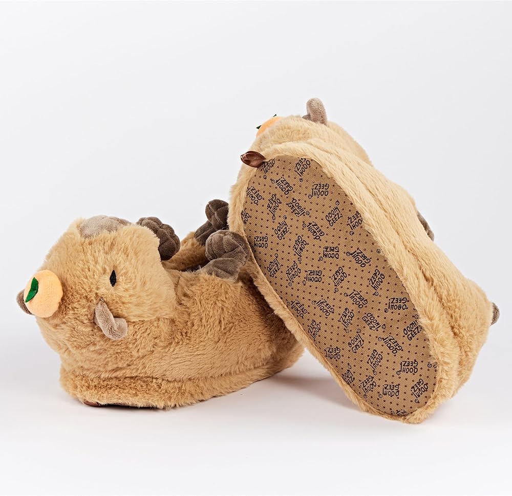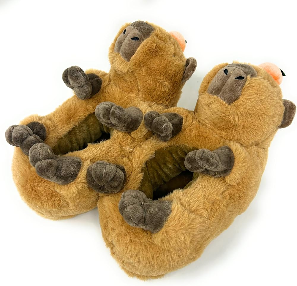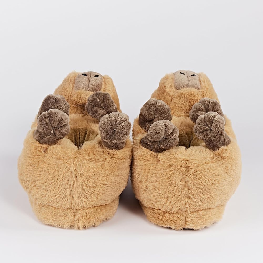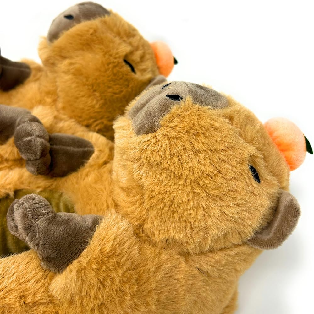 [Cute & Comfortable Design] Meet Mabel the Capybara, these adorable capybaras are ready to hug your feet! Stay warm and cozy comfort with these furry plush animal slippers featuring cute 3D capybara design, complete with tangerine on her head.