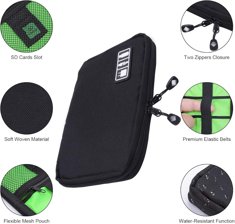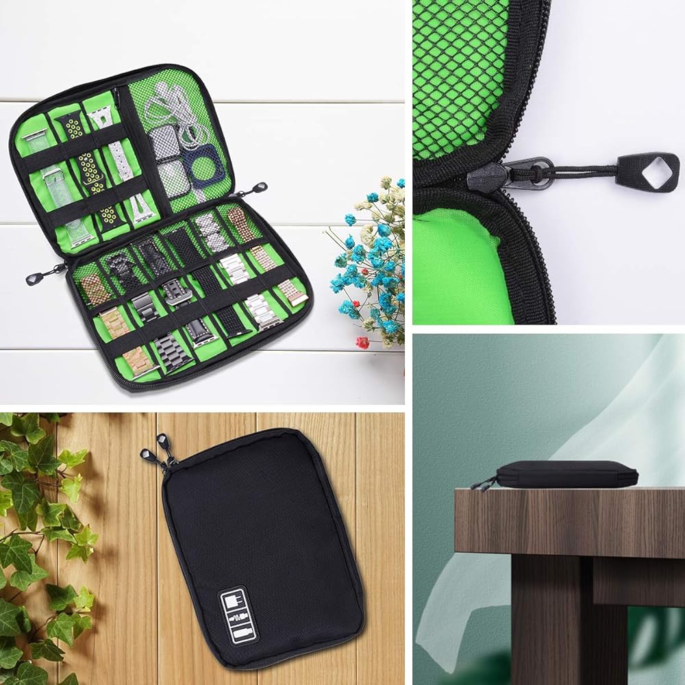 iiteeology Smart Watch Band Storage Bag, Universal Watch Band Accessories Organizer Bag Travel Storage Bag, Extra Pocket for Magsafe Charger, Cable, Headphone, USB, SD Cards, Black