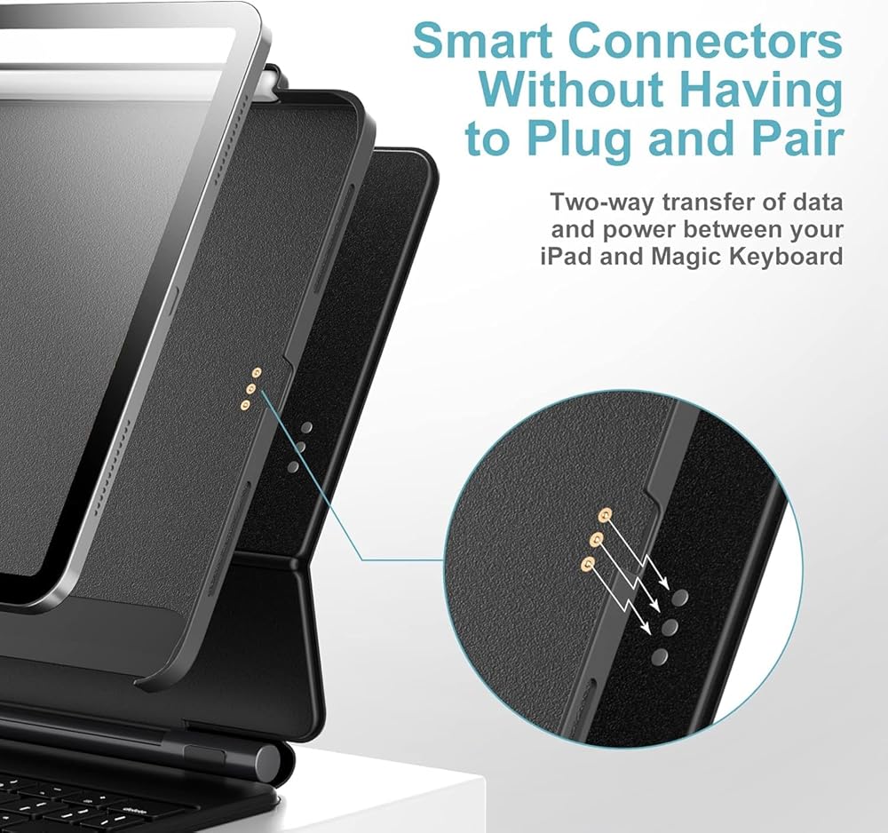 SMART CONNECTORS: With 3 smart connectors at the bottom, the case supports the seamless two-way transmission of data and power between iPad and Magic Keyboard/Smart Keyboard Folio. No plugging or pairing is required.