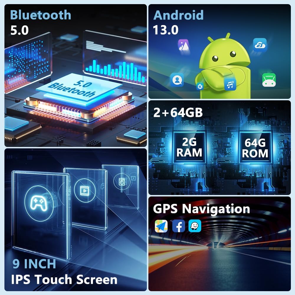 [Bluetooth Connectivity] Fast matching Bluetooth connection,The built-in Bluetooth and microphone allow you to make calls, listen to music, navigate maps, and more without hands-free control,let your hands focus on the steering wheel.Hi-Fi function, high-fidelity sound quality, can perfectly reproduce the sound of music or video.