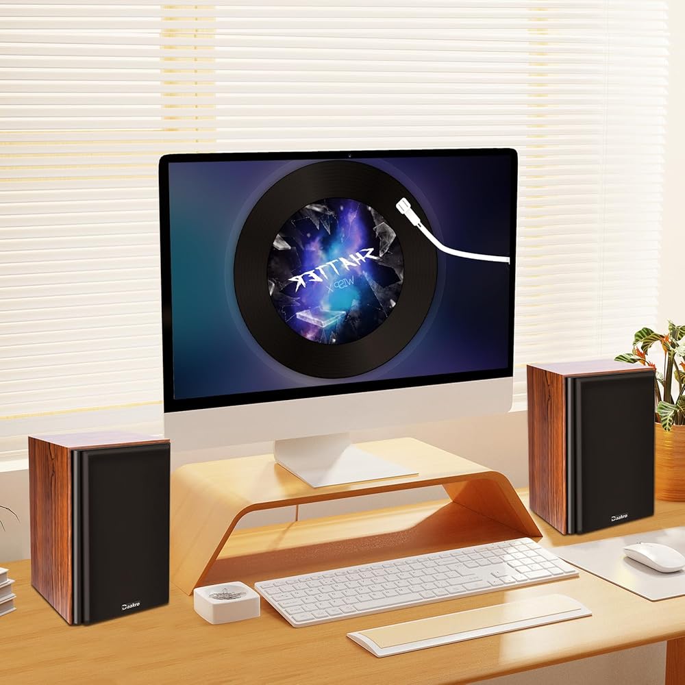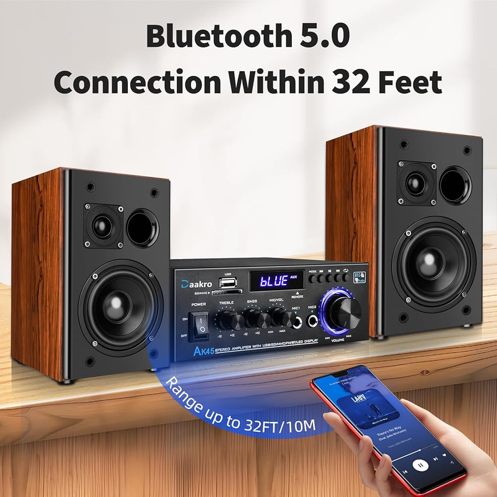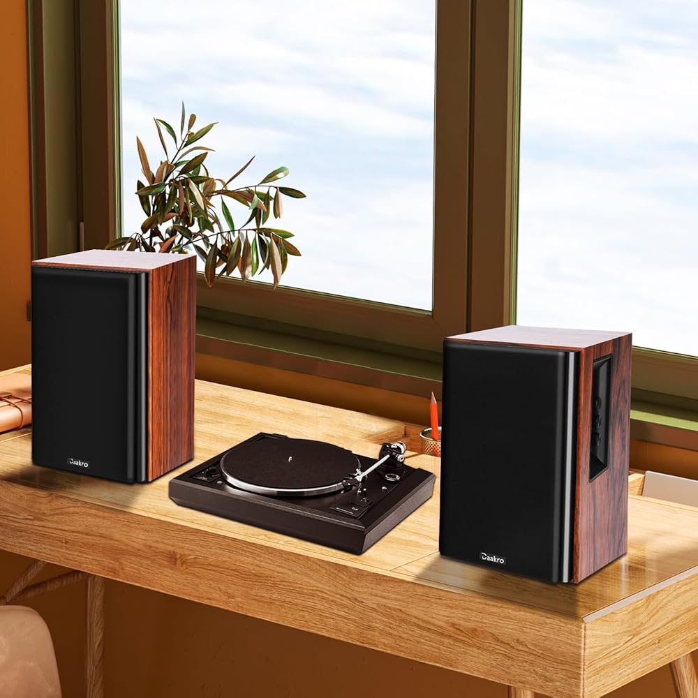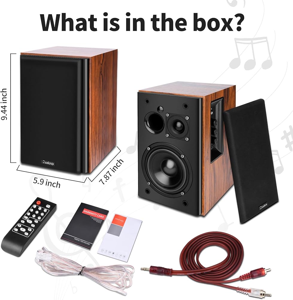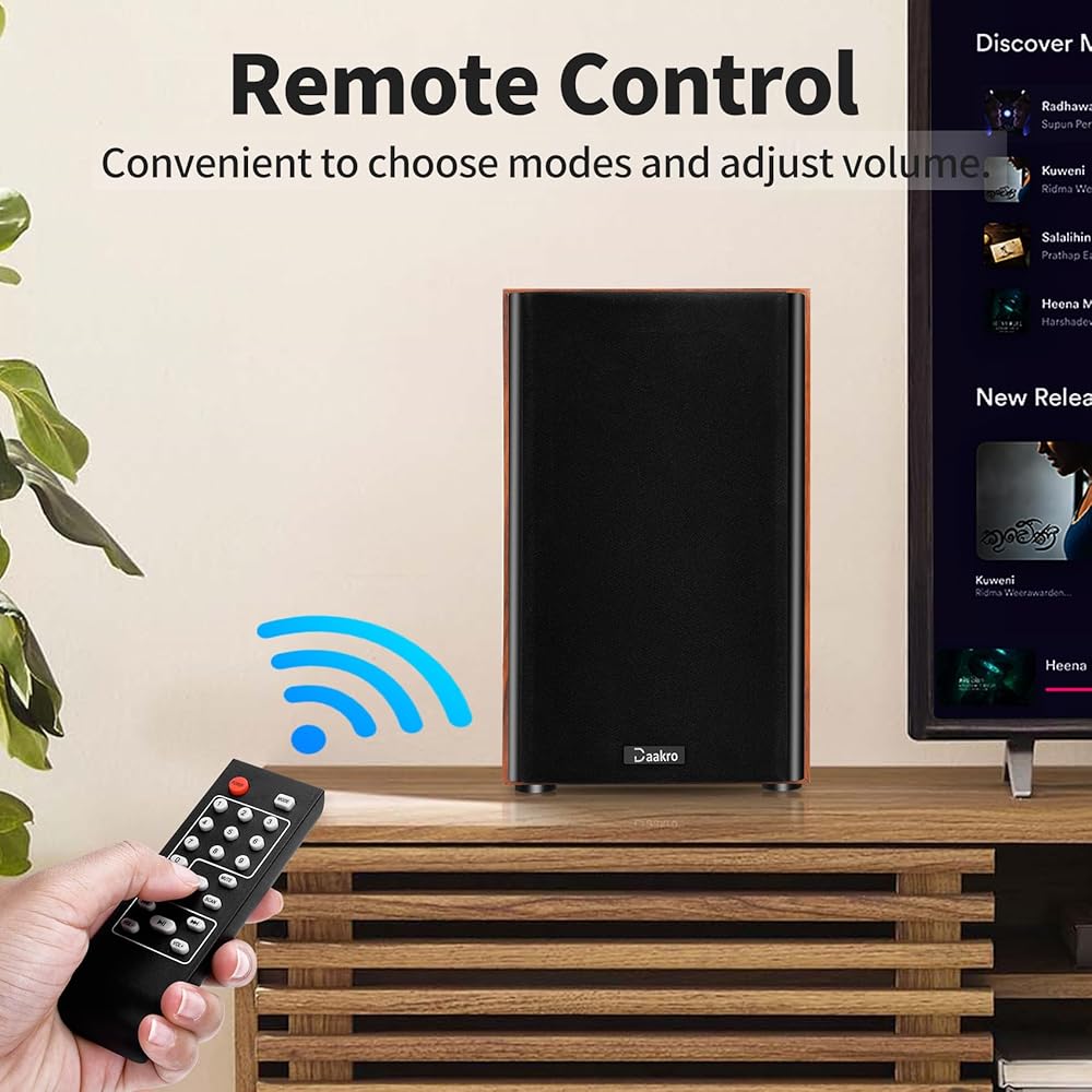 [Bluetooth 5.0 Fast Connection] Daakro Home Theater Bookshelf Speakers uses the latest Bluetooth 5.0, faster connection and the most perfect sound quality transmission in an accessible environment, ensuring no distortion and playback delay. You can easily stream your favorite music, broadcast, or audiobooks from record player, laptop smartphone, tablet, or any smart device through Bluetooth 5.0.