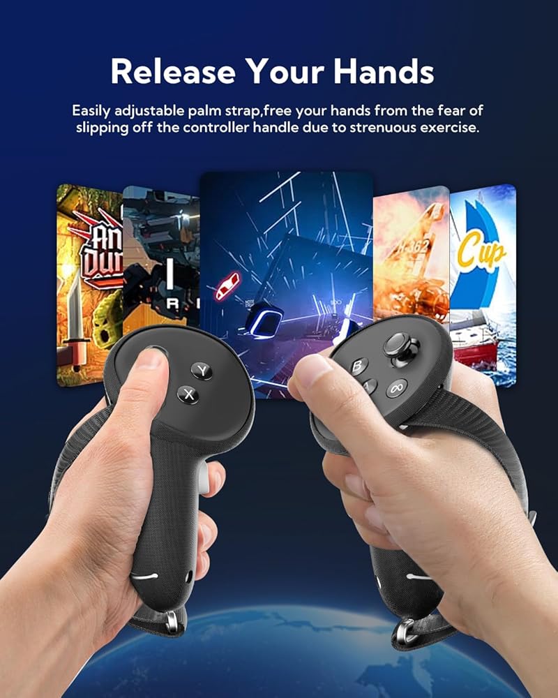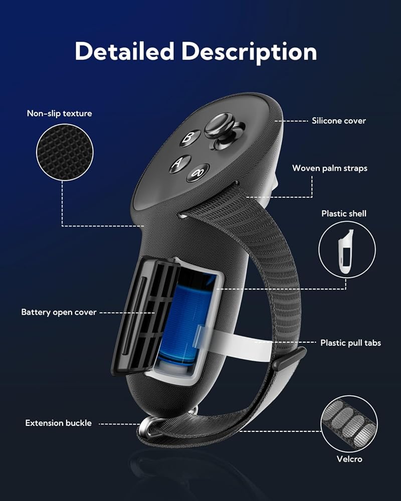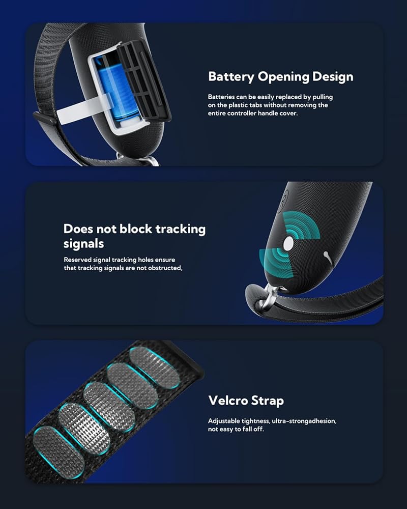 Do Not Block Signal & Enhance Protection for Quest 3 Controller: The reserved signal tracking holes on the controller grips cover ensure that tracking signals are not obstructed. The controller strap prevent your controllers from impacting scratching and throwing.