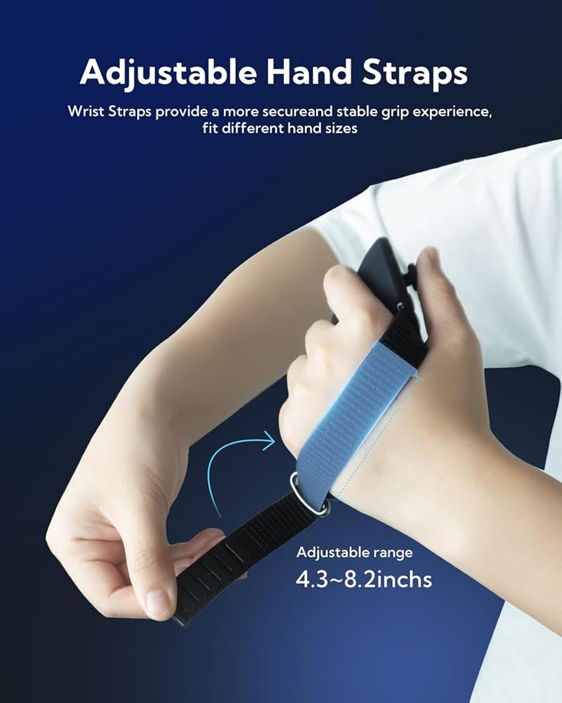 Adjustable Hand Straps: The adjustable hand straps can fit 4.3-8.2 inch hand sizes even kids can use, providing a more secure and stable grip experience. Keep your controllers secure with a knuckle strap, preventing accidental throws and ensuring a firm grip even when your hands get sweaty, providing extra protection for your device.