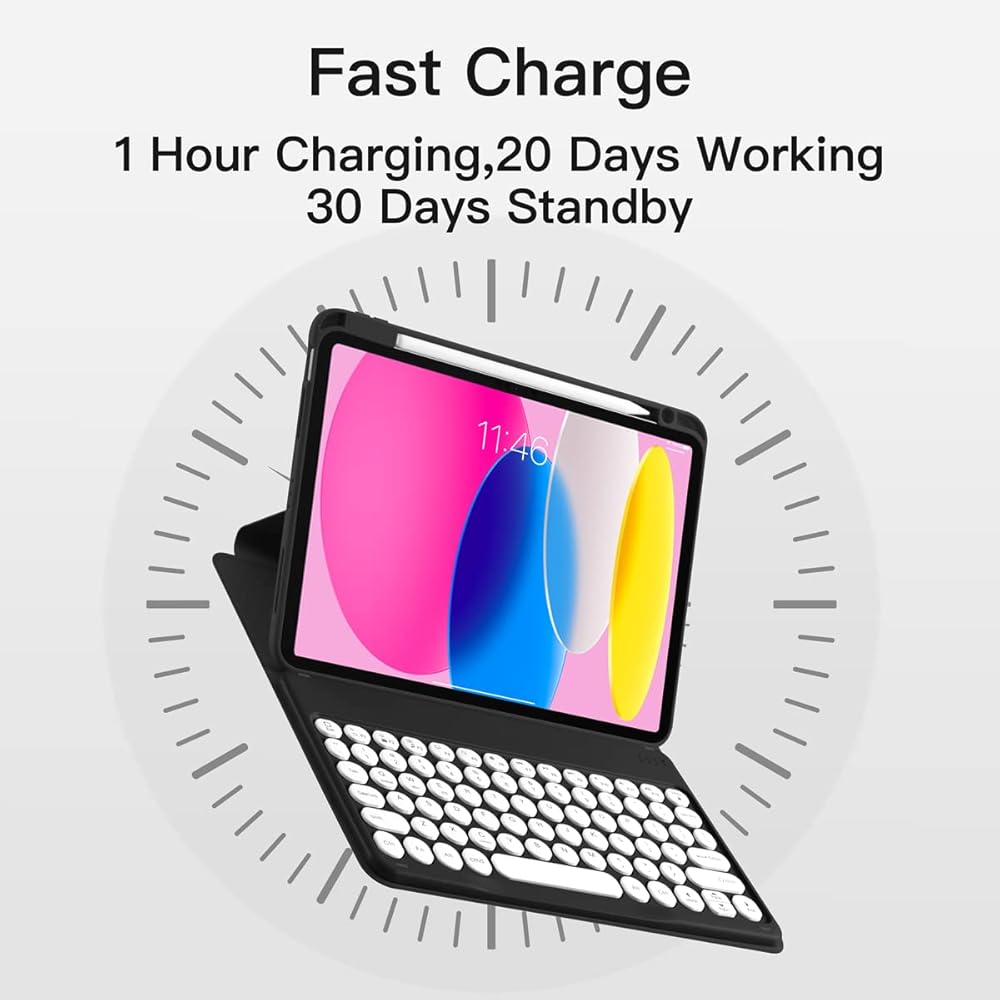 【 Removable Keyboard Case 】iPad keyboard is removable and the Bluetooth connectivity is easy. cute retro round button and color panel , Stylish and Elegant design, it can transform your iPad into a laptop and give your iPad a full protection.