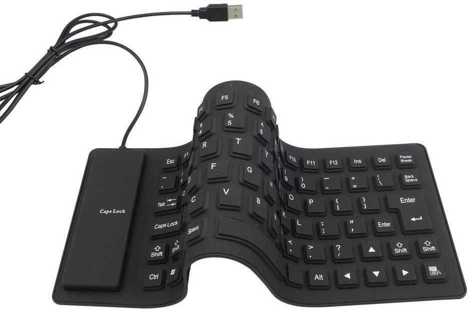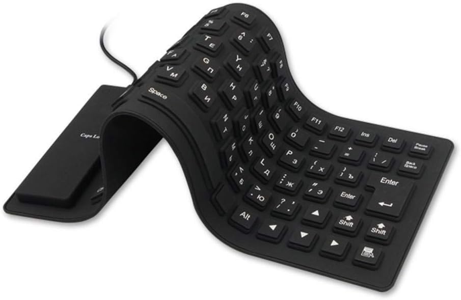 Flexible foldable keyboard is soft, durable, and comfortable to the touch Protective skin is dustproof and waterproof, completely covering the keyboard beneath USB connector is plug and play Washable in soap and water Can be wiped clean of spilled liquids such as water, coffee, or tea with a damp cloth Rolls up for easy storage Soft material allows for silent typing Ideal for travel, work, or school
