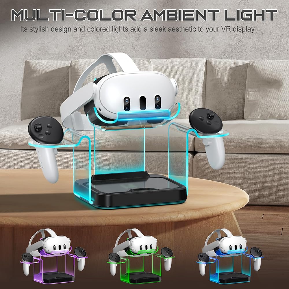 Charge and Storage for Meta Quest 2 and 3: Elevate your Meta Quest 2/3 experience with our versatile charging stand designed to optimize convenience, storage, and charging for your VR essentials.Comes with 4pcs 1100mAh rechargeable batteries,a 15W power adapter and a USB-A to USB-C cable.This powerful charging solution is designed to keep your VR headset and controllers fully powered, ensuring you're always ready for your next virtual adventure.Add multi color ambient lighting adds fun to your gaming atmosphere.