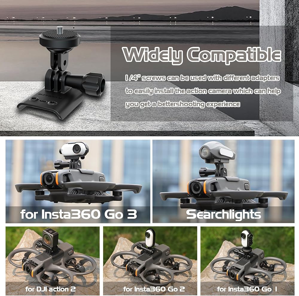 【Exclusive Design】The adaptateur mount is designed for DJI Avata 2 drone with strong compatibility. Shipping List: adapter bracket *1; 1/4" adapter *1; long screw *1; small screws *2; screwdriver *1.