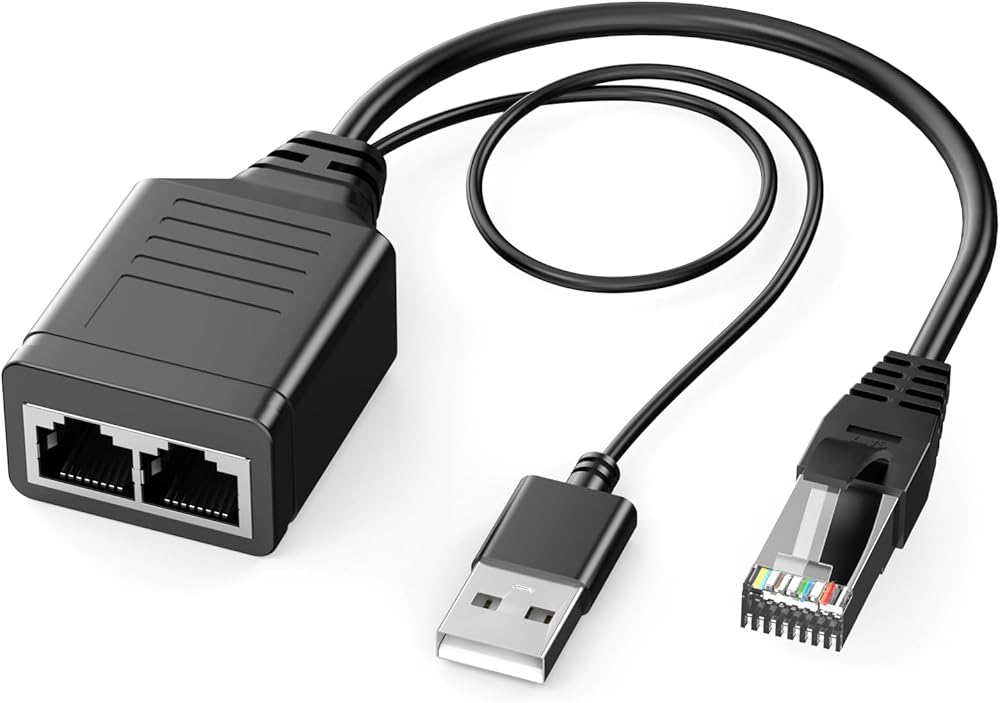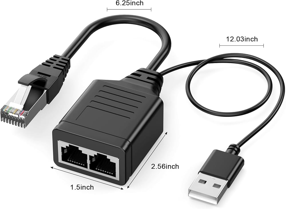 This ELECTRICME RJ45 Ethernet Splitter, Ethernet Splitter 1 to 2 with a USB charging cable [2 Devices Simultaneous Networking], the maximum speed of each device is 1000mbps.