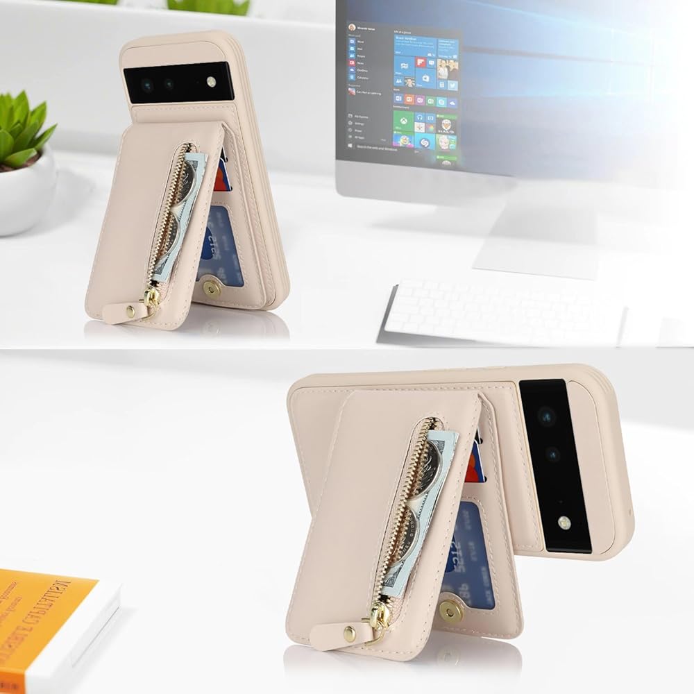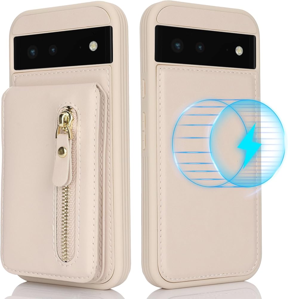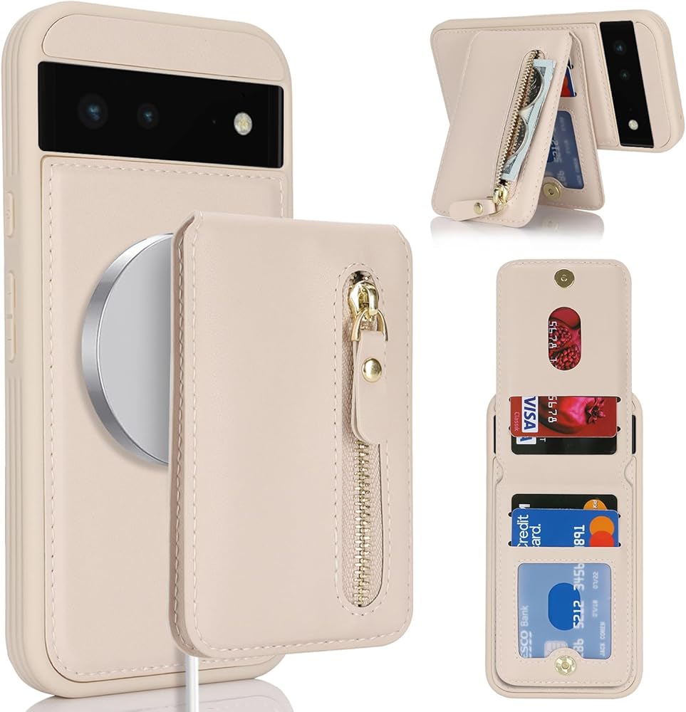 for Google Pixel 6 Phone case with Card Holder with Compatible magsafe Magnetic, Key Chain PU Leather Flip Kickstand Detachable 2-in-1 Wallet case for Pixel 6 Women Men-Warm White