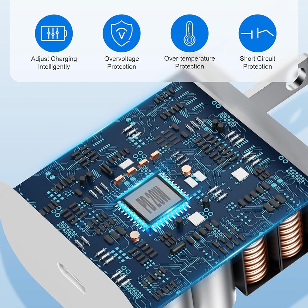 【Safe and Efficient Fast Charge】: Phone 15 fast charger wall charger adapter has passed the UL standard certification and has built-in multiple protection systems to avoid overvoltage, overcharge, overheating, etc adjuster-cables. The charger plug can automatically match the current required by usb c devices