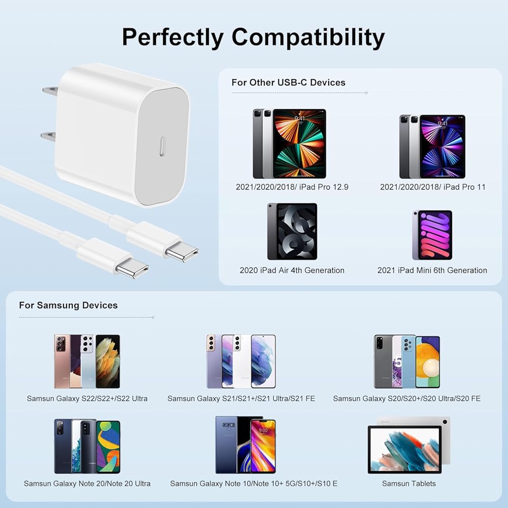 【Compatibility List】: deloni usb c charger set compatible with iPhone 15/ 15 Plus/ 15 Pro/ 15 Pro Max, it also charger for iPad usb c port series device, 2022/2021/2020/2018 iPad Pro 12.9 Gen 6/5/4/3, iPad Pro 11 Gen 4/3/2/1, New iPad Air 5/4th, iPad mini 6th 2021, ipad 10th 2022, Samsung Galaxy S21 and Google Pixel 2, Nexus 6P and more USB-C phones, tablets
