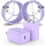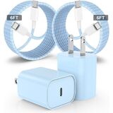 شاحن USB C شحن سريع لجهاز iPad Pro لجهاز iPad Pro 12.9، 11 بوصة 2021/2020/2018، iPad Air 5th 10.9 بوصة 2022، iPad Mini 6 الجيل 2021، كتلة شاحن PD 20 وات مع كابل USB C إلى C بطول 6.6 و10 أقدام - قطعتان