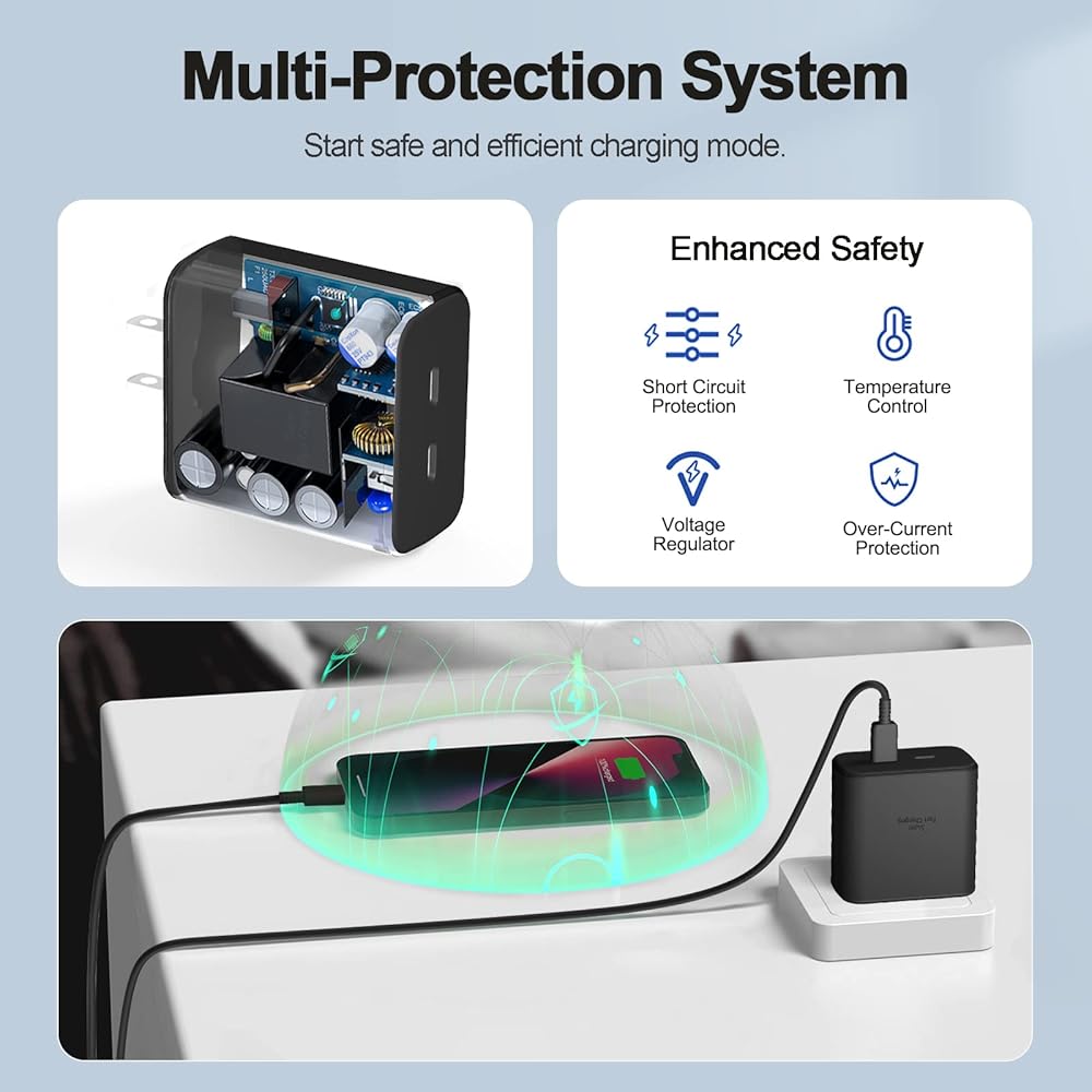 【Safety & Warranty】 Made of high-quality material and built-in protection system, the dual usb c charger meets safety standards. Multiple safety systems also protect devices from overheating, overcharging, and over-voltage. Warranty for 24 months, 30 Days No-hassle Return Policy, friendly customer service.