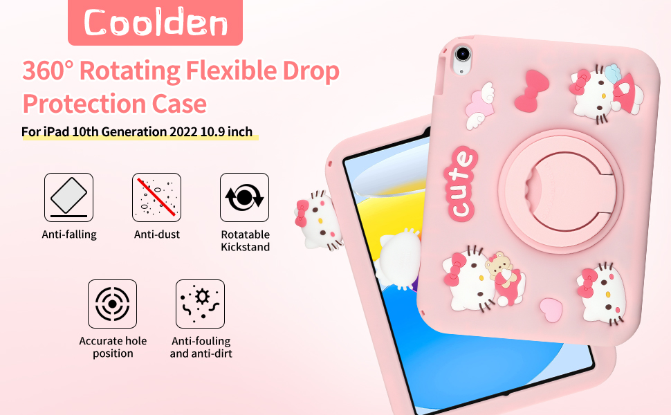 [360°Rotating Stand & Shoulder Strap] 360°rotating kickstand easily holds ipad caes 10.9 inch to provide stable horizontal or vertical viewing angles for a variety of activities, with a built-in Pencil holder for secure storage when using the case, and a free detachable, adjustable, and adorable pink shoulder strap to conveniently carry your iPad 10th generation on the go.