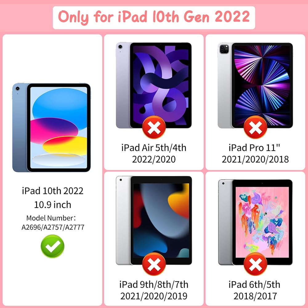 [Compatible Models] The pink silicone case for iPad 10th Generation 10.9 Inch 2022 (Model number: A2757, A2696, A2777). Please confirm the iPad 10.9 inch model before you order this case. You will receive a iPad case, a screen protector and a shoulder harness.