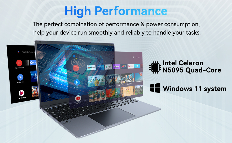 🚀【NEXT-GEN LAPTOP EXPERIENCE】Our 15.6 inch laptop computer is powered by an Intel Celeron N5095 processor, with a frequency up to 2.9GHz, ensuring no latency and outperforming standard processors. Equipped with the latest pre-installed Windows 11 system, it offers a safer and faster experience compared to previous Windows versions. This perfect combination of performance and power efficiency keeps your device running smoothly and reliably, ready to handle all your tasks.